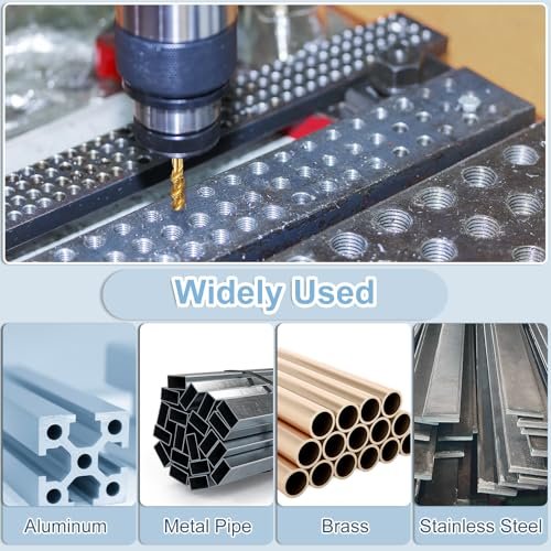 Spiral Flute Tap: Thread size: 1/4-20 UNC; thread length: 22mm / 0.87", overall length: 71mm / 2.80", square shank side width: 5mm / 0.20". 2B tolerance, right-hand thread cutting, with clean threads and sharp-cut cutting edges for fast and accurate tapping.. Notable Features: Spiral flute design prevents breakage, and enables more efficient tapping. The spiral tip of the tap helps guide it into the hole, reducing the torque required to turn it, and the flutes easily remove extra from the hole and machine.. Wide Applications: Spiral flute thread taps are suitable for machining blind or deep holes and sticky materials, and can be used for tapping stainless steel, aluminum, cast iron, alloy steel, ordinary steel, non-ferrous metals, hard plastics, etc. Suitable for drilling machines, tapping machines, CNC machine tools and milling machines. Used with tapping oil, you can get more precise threads and more durable taps.. Strong & Durable: The taps are made of M2 high-speed steel (HSS6542) and run at high speeds to quickly and efficiently process threads. It has high hardness, toughness and good wear resistance, good cutting performance, and can produce clean and precise holes. The titanium coating has excellent corrosion resistance, prevents corrosion and , making tapping smoother.. Warm Tip: It is recommended to use machine taps with tap chucks with overload protection. It is not recommended for manual use and electric drill tapping to avoid damage caused by uneven force. The tapping angle should be 90 degrees vertical. The harder the material, the slower the drilling speed..Other fine products