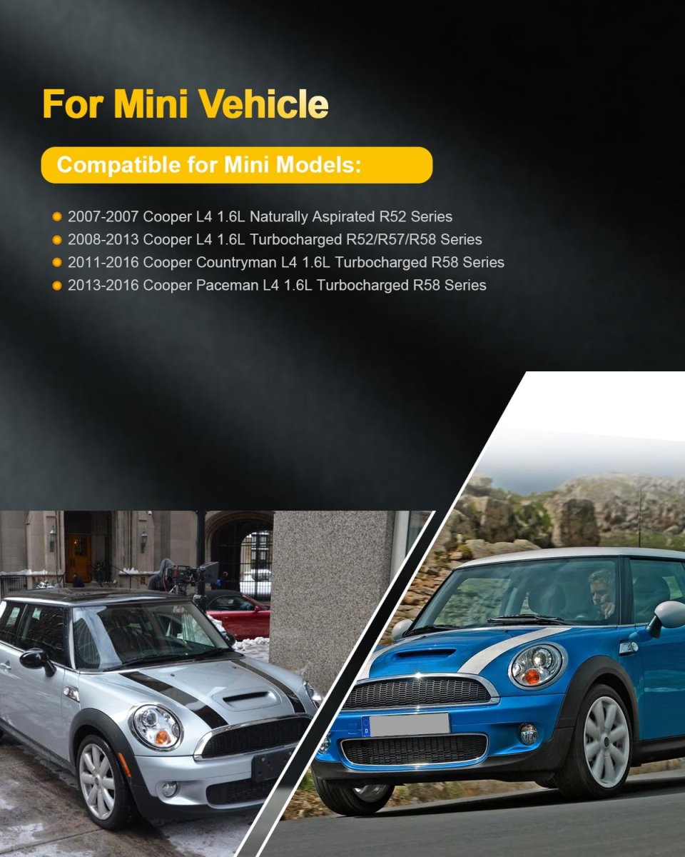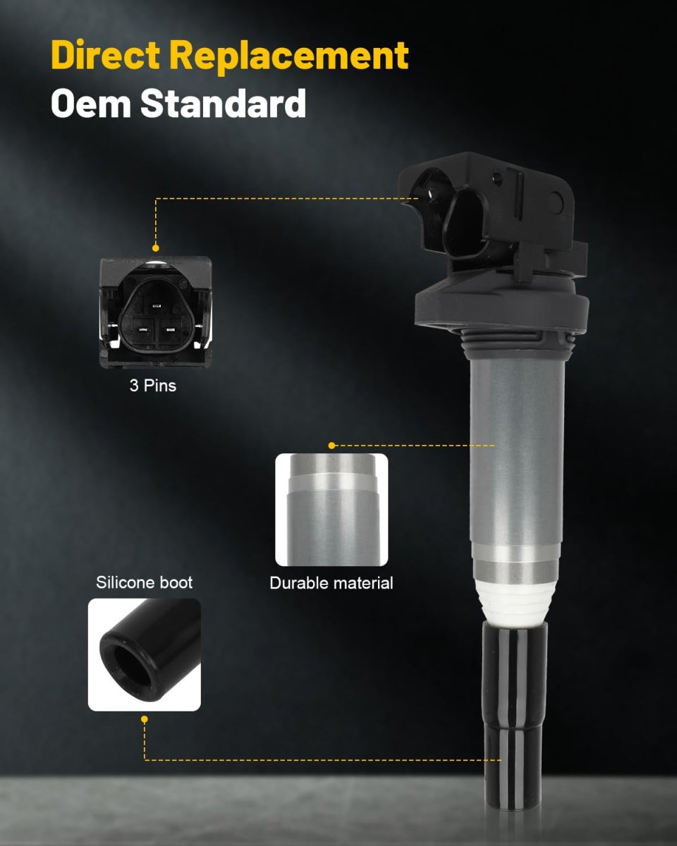 Compatible Vehicle : for Mini Cooper R52 L4 1.6L 2007 Naturally Aspirated, Cooper R52/R57/R58 L4 1.6L 2008-2013 Turbocharged, Cooper Countryman R58 L4 1.6L 2011-2016 Turbocharged, Cooper Paceman R58 L4 1.6L 2013-2016 Turbocharged. Replace OEM Part Number:UF-598, UF598, 12137575010, 19005293, NGK97968, 97968. Premium Quality Material:You'll have an easy time mounting these coils due to their lightweight and winding construction. The copper material ensures maximum power delivery to the spark plugs. They come pre-greased for direct replacement.Superior winding process yields greater wire length control, which means less chance of a breakdown of the wire coating and insulation. Material resists pinholes and cracks that can cause failures. Function & OEM Fit:OCPTY Ignition Coils are engineered for original equipment and replacement applications.Every component either matches or improves on the OE design to ensure fast and easy installation with superior performance and reliability.The ignition coil acts like a transformer.the ignition coil transforms the electrical energy from the vehicle battery into high voltage, saves it briefly and then emits it as a high voltage current pulse to the spark plug.Other fine products