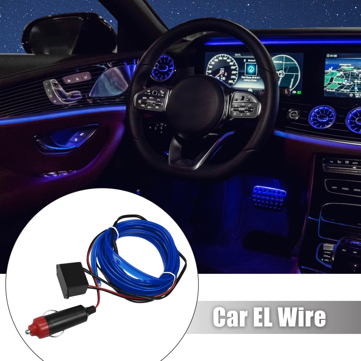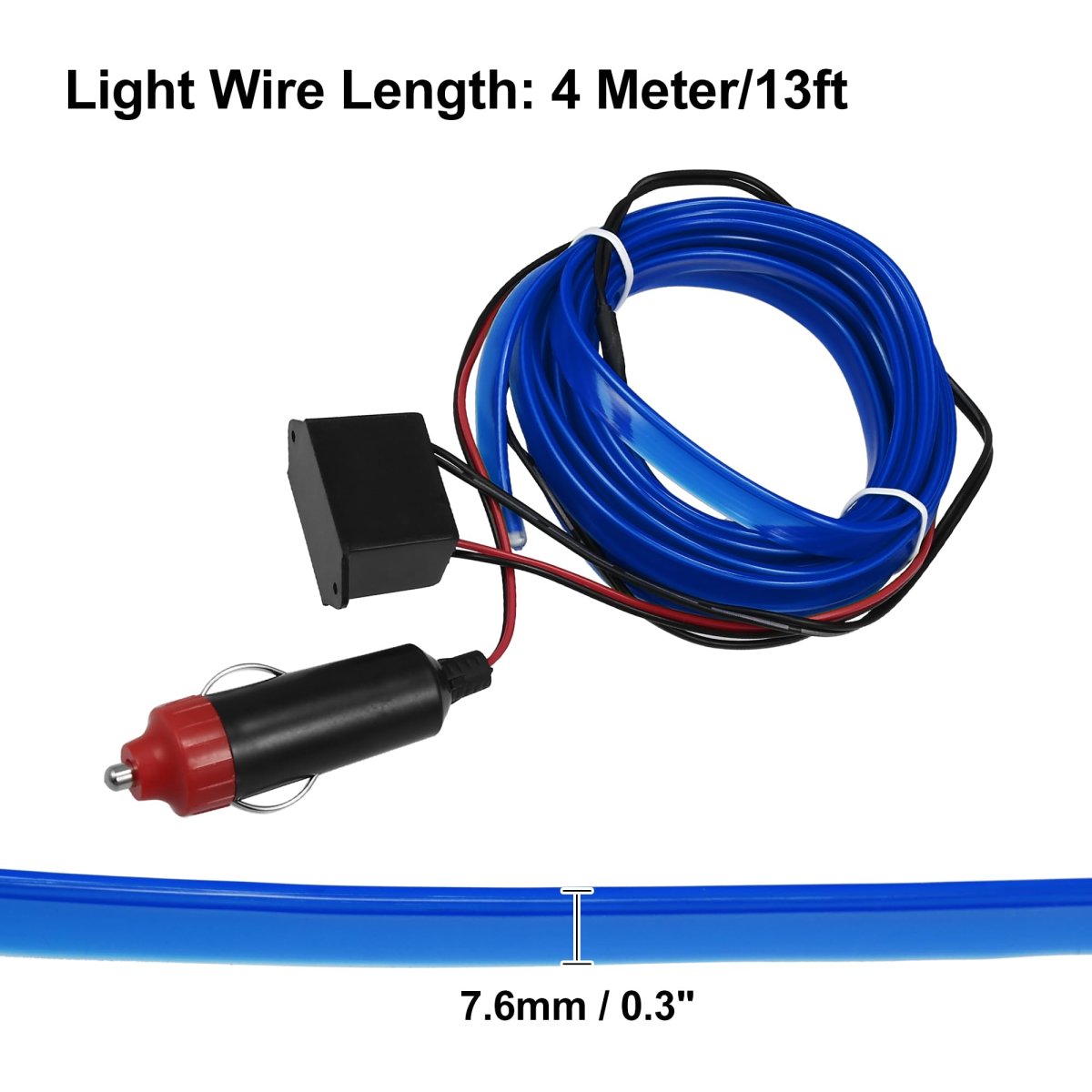- 4 Meter 13ft Neon El Wire String Strip Blue Cold Light Glow With Cigarette Lighter For Car Interior Decoration