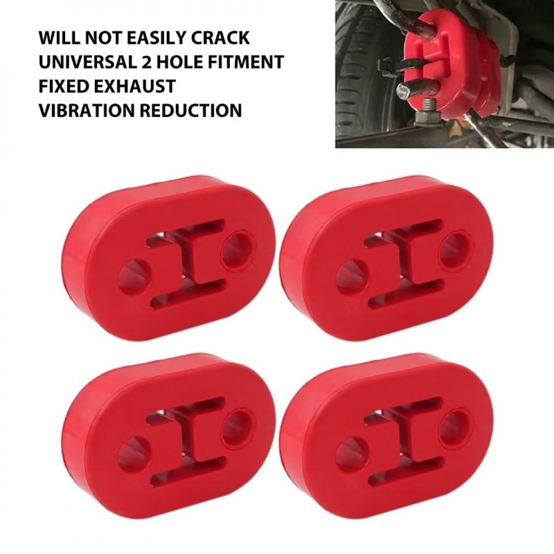 Exhaust Hangers Made of High-density Rubber Compound Material Providing Extra Durability and Strength, Make the Exhaust Hanger Anti-abrasive, Anti High Temperature and Not Easy Damage. Universal Fits For Most Vehicles.. Specifications: Length: 2.9"; Width: 1.97"; Thickness: 0.78"; Hole diameter: 0.45".. Better secure the exhaust, It could prevent muffler free play while driving and can reduce the shaking of exhaust pipe and noisy of shaking, less chance for exhaust leak due to exhaust system.. It's perfect for replace old or cracked exhaust mount. This Hangers Serve as the Connecting Part Between the Exhaust Pipe Bracket, Muffler, Chassis Hangers. Perfect to replace your old or broken Exhaust Mount, Easy to install.. Package Includes: 4Pcs Red Muffler Hanger..Other fine products