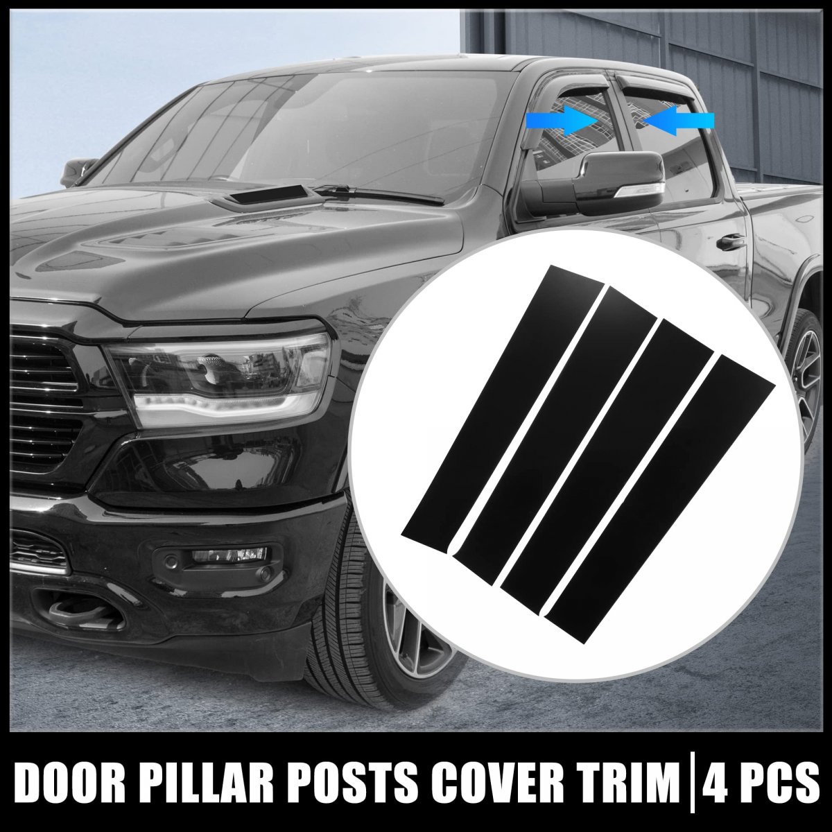 - 4 Pcs Door Cover Panel Trim Pillar Posts Exterior Window Anti Scratch Stickers For Dodge Ram 2009-2018 Black