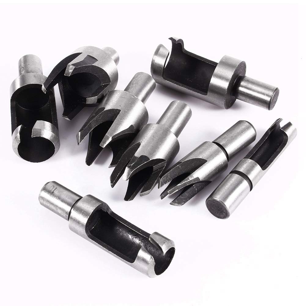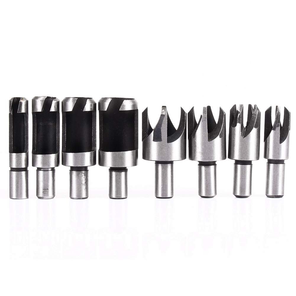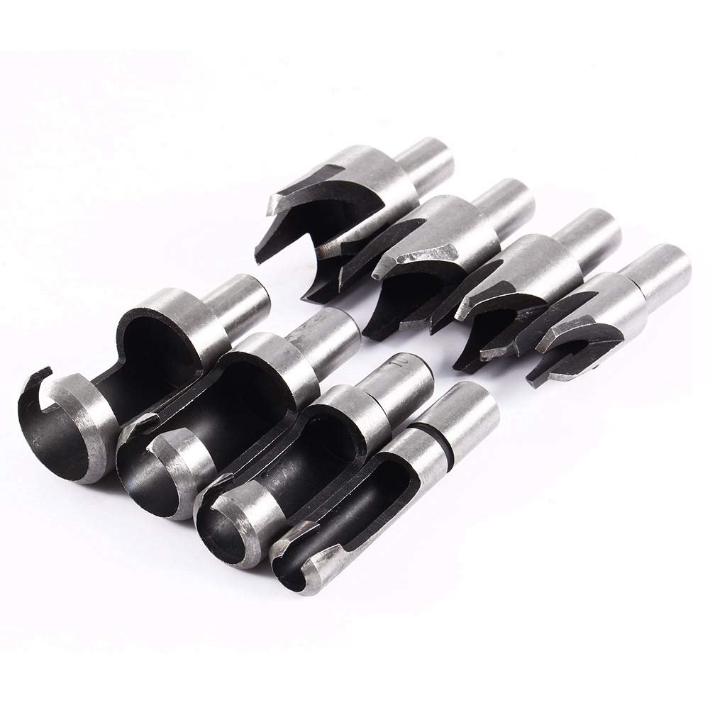 - 4 Standard Plug Cutters Chamfered 8 Piece Set Carbon Steel Round Shank Bench Drill Wood Hole Cutter Tenon
