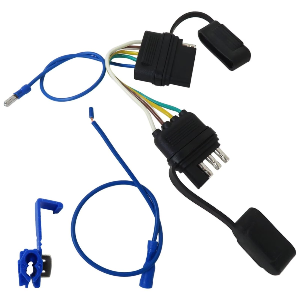4 Way to 5 Pin Flat Adapter: The electrical wiring adapter converts a 4-way flat vehicle socket to 5-way flat boat trailer plug, adding in a fifth wire for the reverse lights and allowing vehicle's 4-way flat to be converted into 5 pin socket. Design For Boat Trailer: 4 pin to 5 pin flat trailer plug specifically intended for boat trailers with surge brakes, 4 way flat to 5 way flat fits all vehicle models with 4-way flat connector, and your Boat trailer comes with a 5-way flat plug. Well Protected: Both of the 4 way male and 5 way female trailer connectors equips with rubber dust cover, protects the terminals from water and dust when not in use. Simple Installation: The blue wire spliced into the reverse light wire on the vehicle, 4 to 5 boat trailer hitch wiring adapter simply plugs into a standard vehicle-side 4 pin flat and trailer-side 5 pin trailer light adapter. Construction: 4 pin flat 5 wire harness kit are molded and features thickened PVC wire coating materials for anti-corrosion, pure copper wires for good conductivity.Other fine products