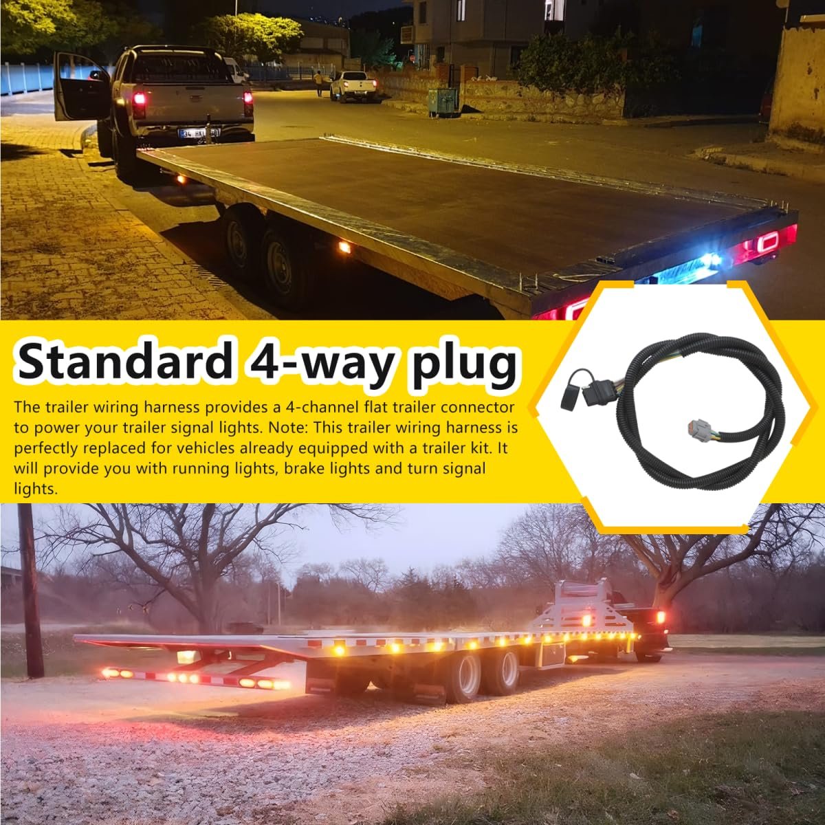 4-Pin Trailer Light PlugStandard 4Pin for Nissan Frontier trailer connector adds versatile towing options to your towing vehicle; Connect the 4-pin trailer light wire harness to power trailer's tail lights, brake signal lights and turn signals. 4 Pin Hitch WireThis 4-flat vehicle side trailer harness requires factory tow package, compatible with Nissan Frontier 2005-2025, for 2005-2011 Nissan Pathfinder, for 2005-2015 Xterra, for 2009-2012 Suzuki EquatorNote: Does not include the relays needed to activate for Nissan's tow package). Easy InstallationPlug and play tow harness, prewired T-connector plugs directly into for Nissan/Suzuki existing wiring, which is located behind your rear bumper on the driver's side. Package Includes1x 4 Way Flat Trailer Wiring Harness.Other fine products