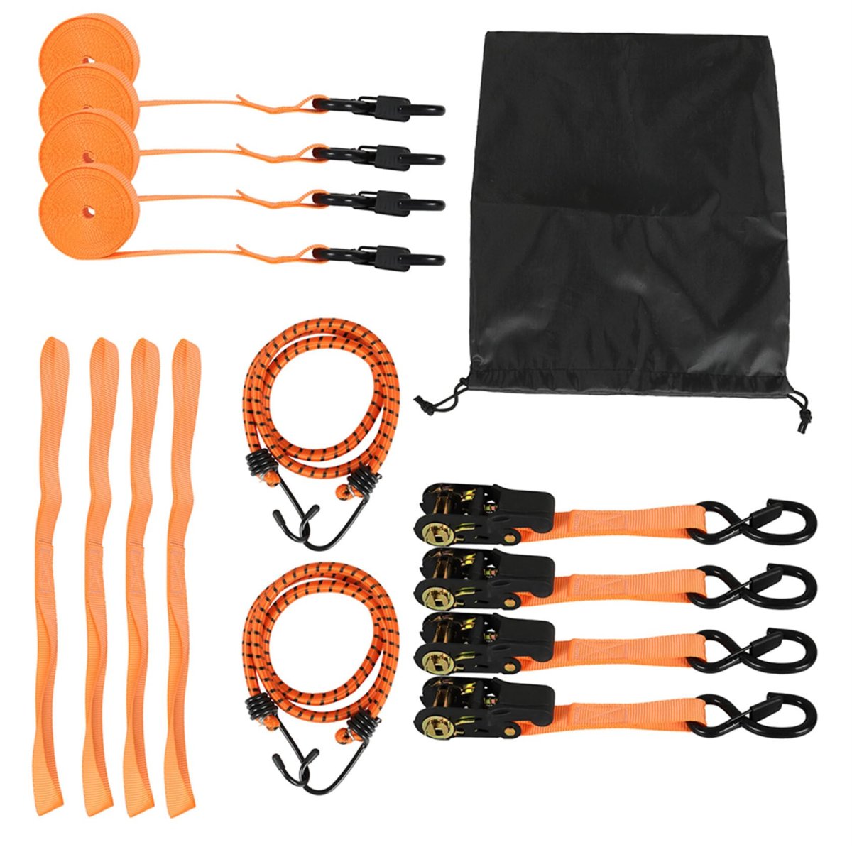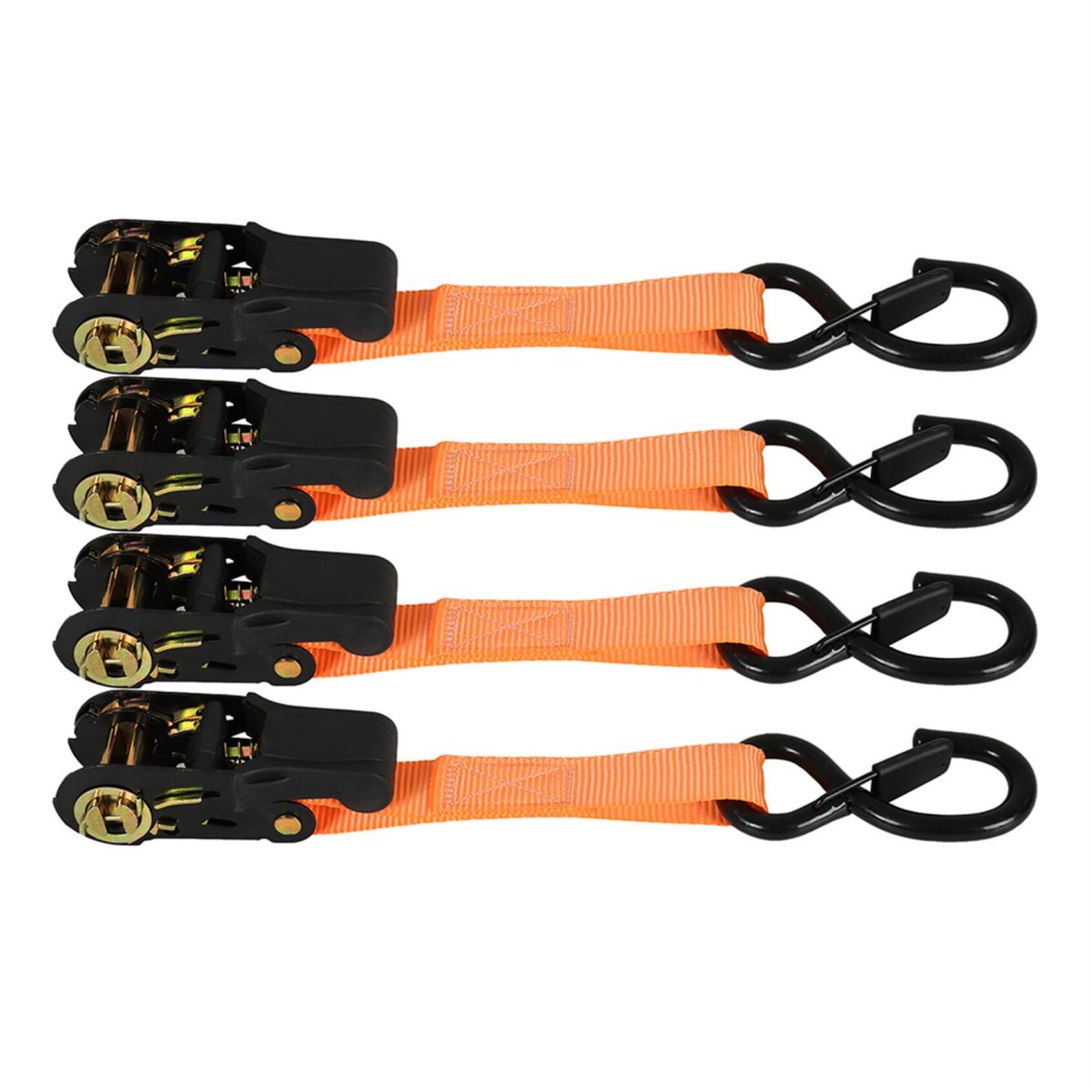 - 4pack Orange Heavy Duty 15 Ft 2200 Lb Break Strength Ratchet Tie Down Straps With Lock S Hooks Soft Loop 2 Bungee Cords 4 Loops