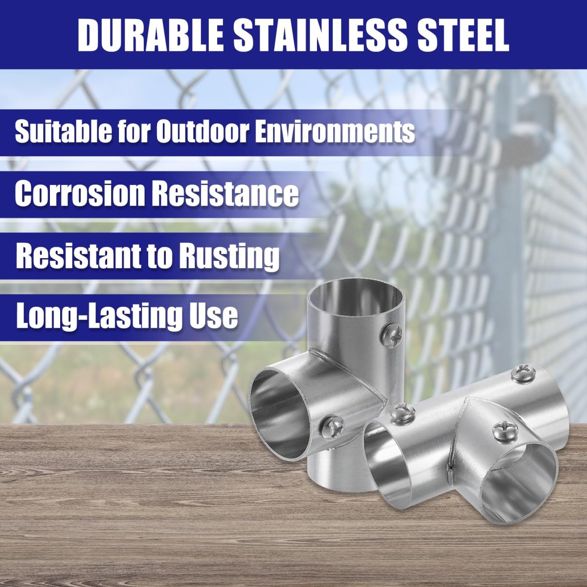 T Pipe Clamp Connector 4pcs Structural Chain Link Fence Stainless Steel Corner Fitting End Rails Fit Od 1 Inch 25mm