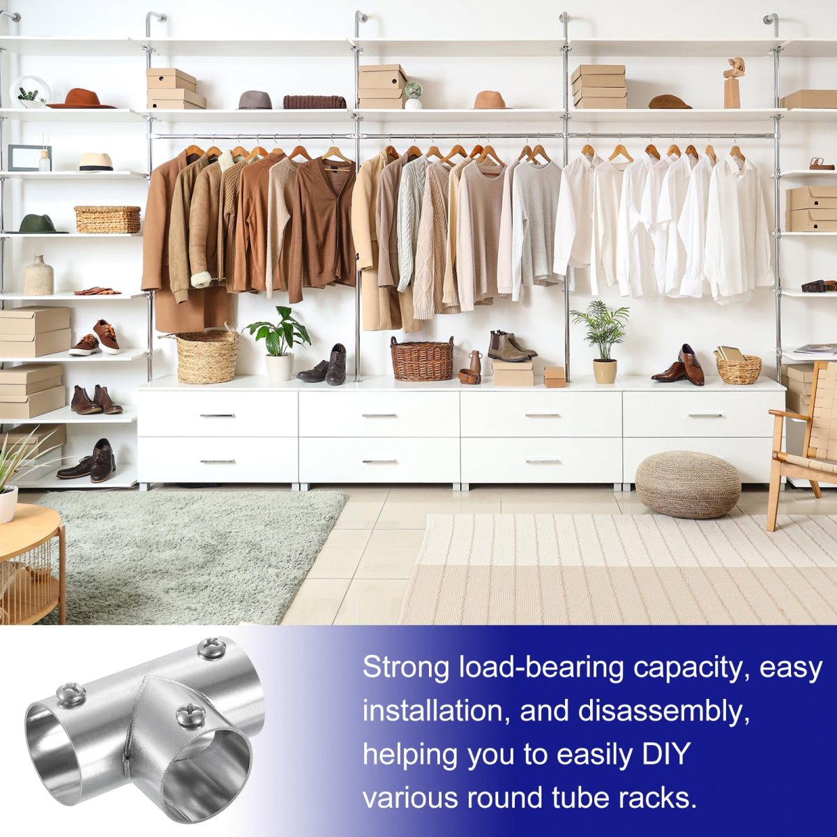 [Package and Size]: Length: 56mm / 2.2inch; Wall Thickness: 1.2mm / 0.05inch; Fit Pipe Diameter: 25mm / 0.98inch; Package Content: 4pcs x Pipe Fitting Connector. [Material]: The pipe fitting connector is made of solid 201 stainless steel, anti-corrosion and rust-proof, strong and durable. The brushed surface has a delicate texture, is scratch-resistant and wear-resistant, and the corners have been polished many times, smooth and burr-free, and will not scratch your hands.. [Feature]: Features a 3-way design that allows them to securely secure three pipes. The overall appearance is simple and elegant, with a metallic silver luster, fine workmanship, strong load-bearing capacity, practicality, and versatility.. [Easy to Install]: Our pipe fitting connector is easy to use and does not require electric welding. You only need to tighten the screws to complete the connection and installation. It is firm, not loose, and can be disassembled and stored anytime.. [Application]: This pipe fitting connector is suitable for DIY connection and installation of round pipe items such as hangers, display racks, handrails, fences, clothes drying racks, support rails, etc..