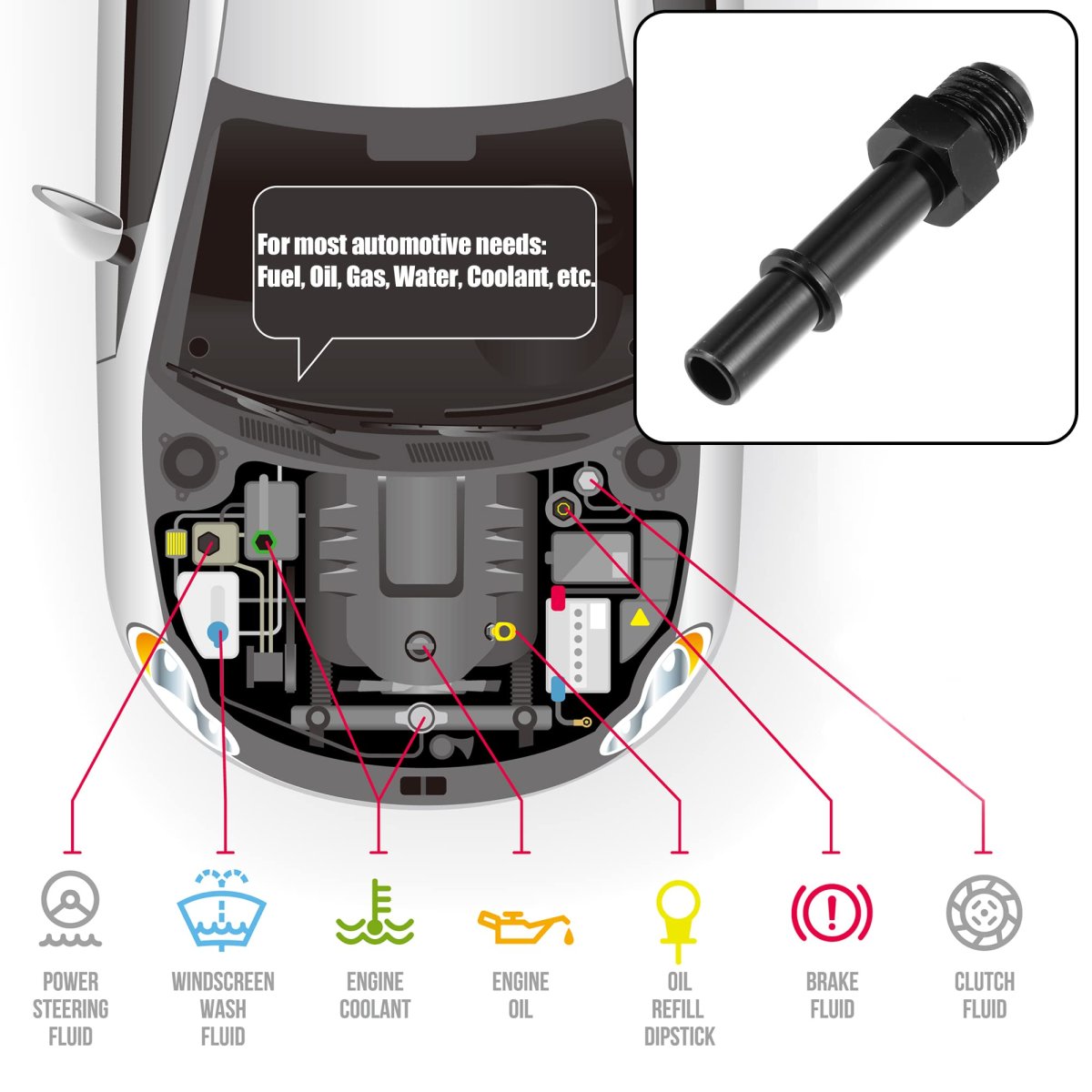 Size: AN6 x 3/8'', Adapter Size: 65x17mm / 2.56''x0.67''(L*W), Inner Diameter: 7mm / 0.28''. Material: It is made of good quality material aluminum alloy, the anodized finish for durability, and strength, intended for long service life.. Fitment: Usually used in the fuel system, such as fuel hose extends, the line connects to the fuel filter, fuel pump, cooler system. Fit for oil; gas; fuel; water; fluid and air.. Features: Designed for smooth flow with tight and leakproof connections..Other fine products