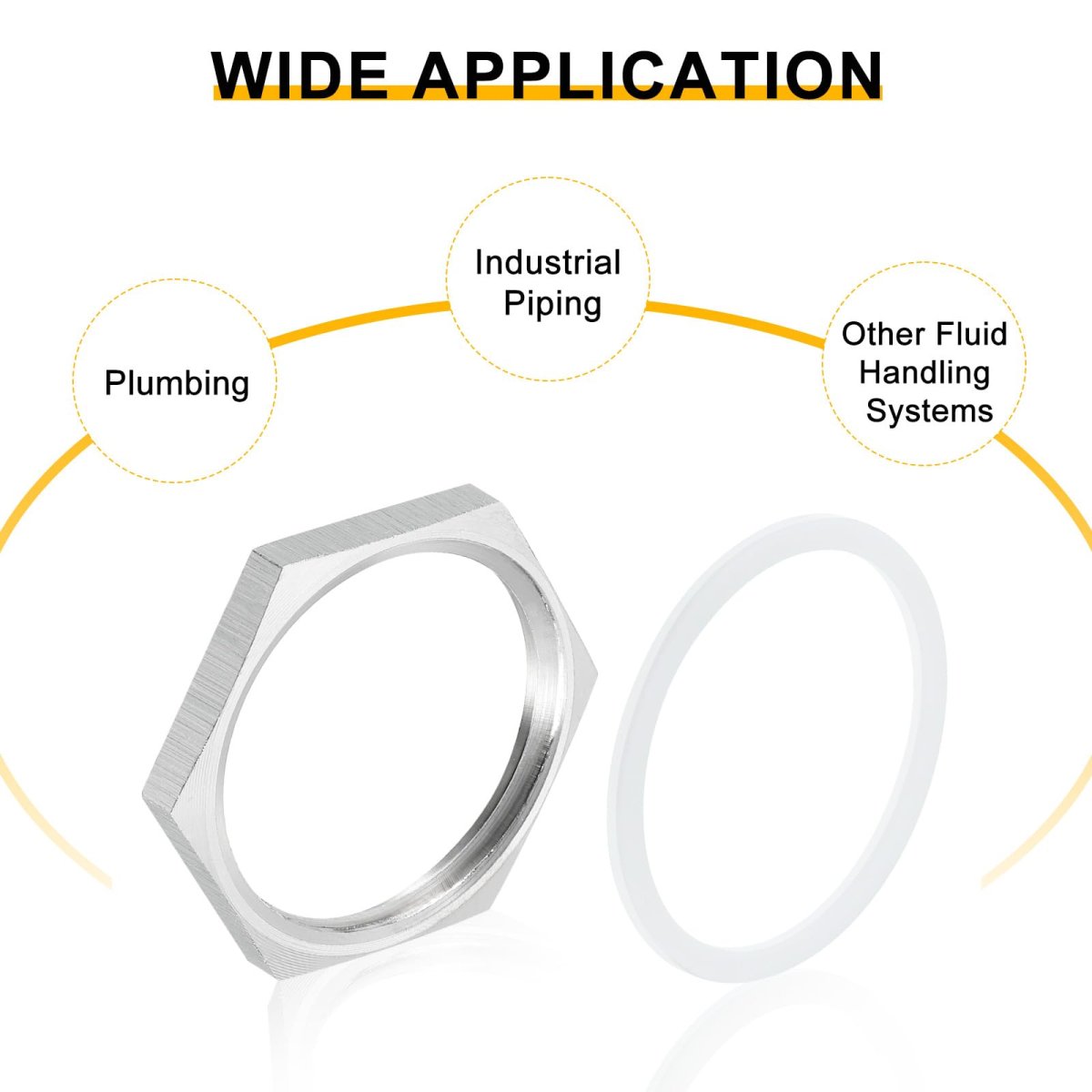 - 4pcs Cast Pipe Fitting Hex Locknut With Washer 304 Stainless Steel Lock Nut Npt 1 Female Thread For Plumbing Fixed Water Broom