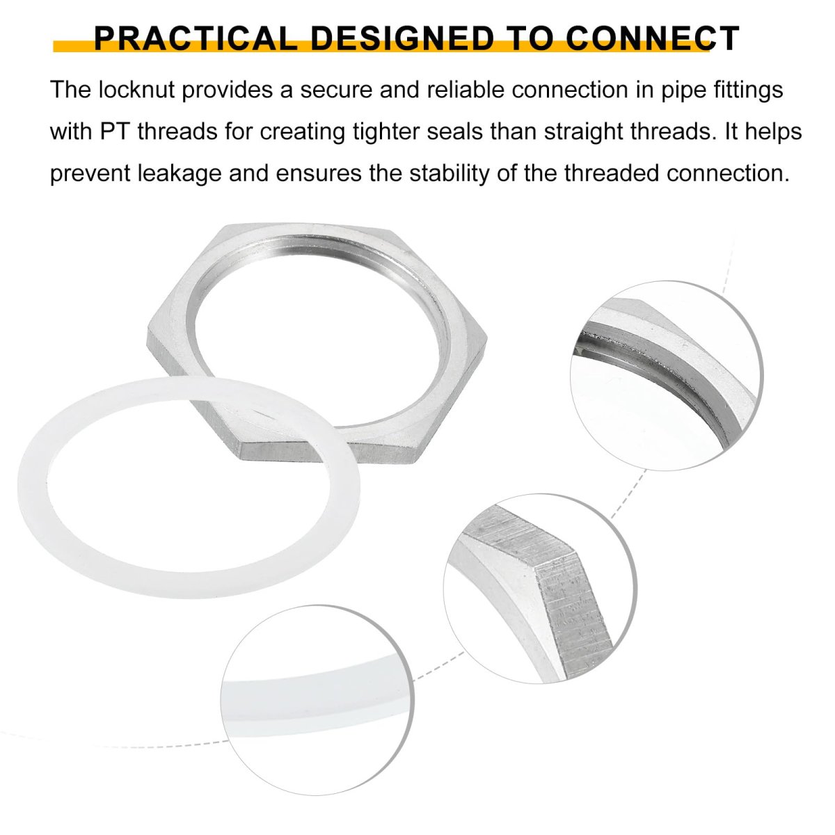 - 4pcs Cast Pipe Fitting Hex Locknut With Washer 304 Stainless Steel Lock Nut Npt 1-1 2 Female Thread For Plumbing Fixed Water