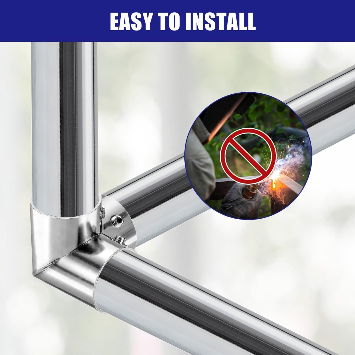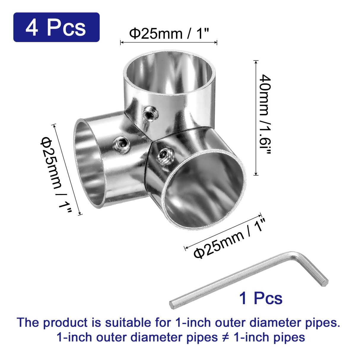 SIZE INFORMATION: This end clamp is suitable for connecting pipes with an outer diameter of 1 inch / 25 mm to another pipe with the same diameter,Length: 40mm /1.6inch; Width: 40mm /1.6inch; Fit Pipe Diameter: 25mm / 1inch;. PIPE FITTINGS DESIGN: Our chain link fence clamp features a Elbow Corner Cross 3 Way shape, allowing you to connect three pipes effortlessly for branching. The pressure distribution of the structure is balanced to ensure a stable pipeline connection.. DURABLE PIPE CONNECTOR: Made of stainless steel material which doesn't easy to break, or crack under the sunlight. It is durable and can be used for a long time.. EASY INSTALLATION: With this pipe connector, you can easily connect pipes without welding, very convenient.. WIDE APPLICATION: This pipe connector is used for the extension and reinforcement of pipe structures, suitable for such as hangers, handrails, fences, support rails, etc. Whether it is a home renovation or a construction site, it provides a stable solution for the fixing of pipes..