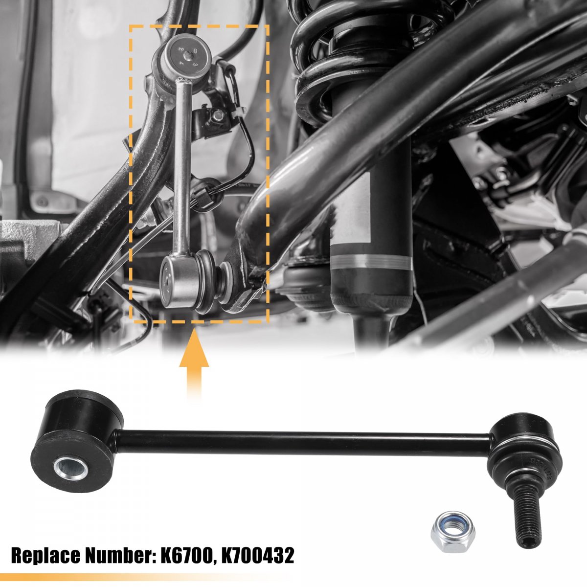 Fitment: Stabilizer Bar Links for Cadillac Escalade 2004-2019, for Cadillac Escalade ESV 2004-2019, for Cadillac Escalade EXT 2004-2013, for Chevrolet Avalanche 2007-2013, for Chevrolet Suburban 2015-2019, for Chevrolet Suburban 1500 2007-2014, for Chevrolet Tahoe 2004-2019, for GMC Yukon 2004-2019, for GMC Yukon XL 1500 2004-2014, for GMC Yukon XL 2015-2019. OE Number:K6700/K700432; Placement On Vehicle: Front, Left, Rear, Right. Package Includes: 2 x Front Stabilizer Sway Bar End Links, 2 x Rear Stabilizer Sway Bar End Links. Function: This sway bar link can fix the clunking noise when going over small bumps, prevent excessive leaning during turns, and improve the car's stability.. When to Replace: Signs your suspension system needs replacement include clunking noises during turns and bumps, loose or misaligned steering wheel, poor handling, uneven tire wear, and visible damage in the suspension system.. INSTALLATION: Manual is not included, first, remove the upper and lower bolt, then disconnect the sway bar links from the sway bar and the control arm. At last, install the new and suitable sway bar links..Other fine products
