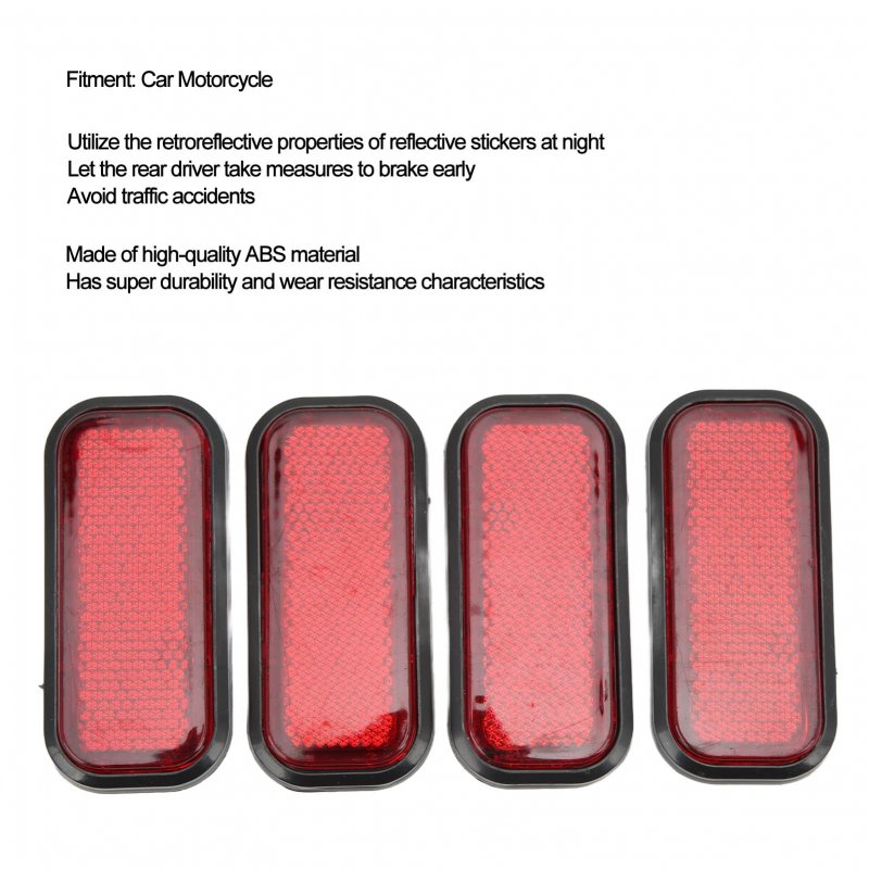 - 4pcs Rectangular Reflector Safety Kimiss Abs Stick On Reflective Sticker Holder High Visibility Universal For Car Motorcycle