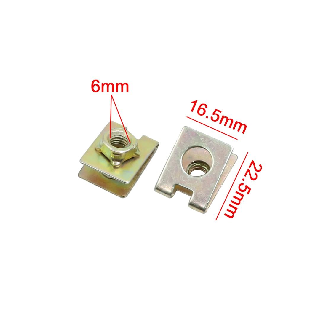 Clip Size: 22.5x16.2x2.5mm / 0.89"x0.64"x0.10"(L*W*H). Screw Size: 21x14mm / 0.83"x0.55"(L*D). They are pressed into a locked position over a panel edge and holds itself in position to receive a screw. Replace rusted or broken U clips to secure auto car body panel or. Used on door trims, roof linings, interior door panels, dashboards.Other fine products