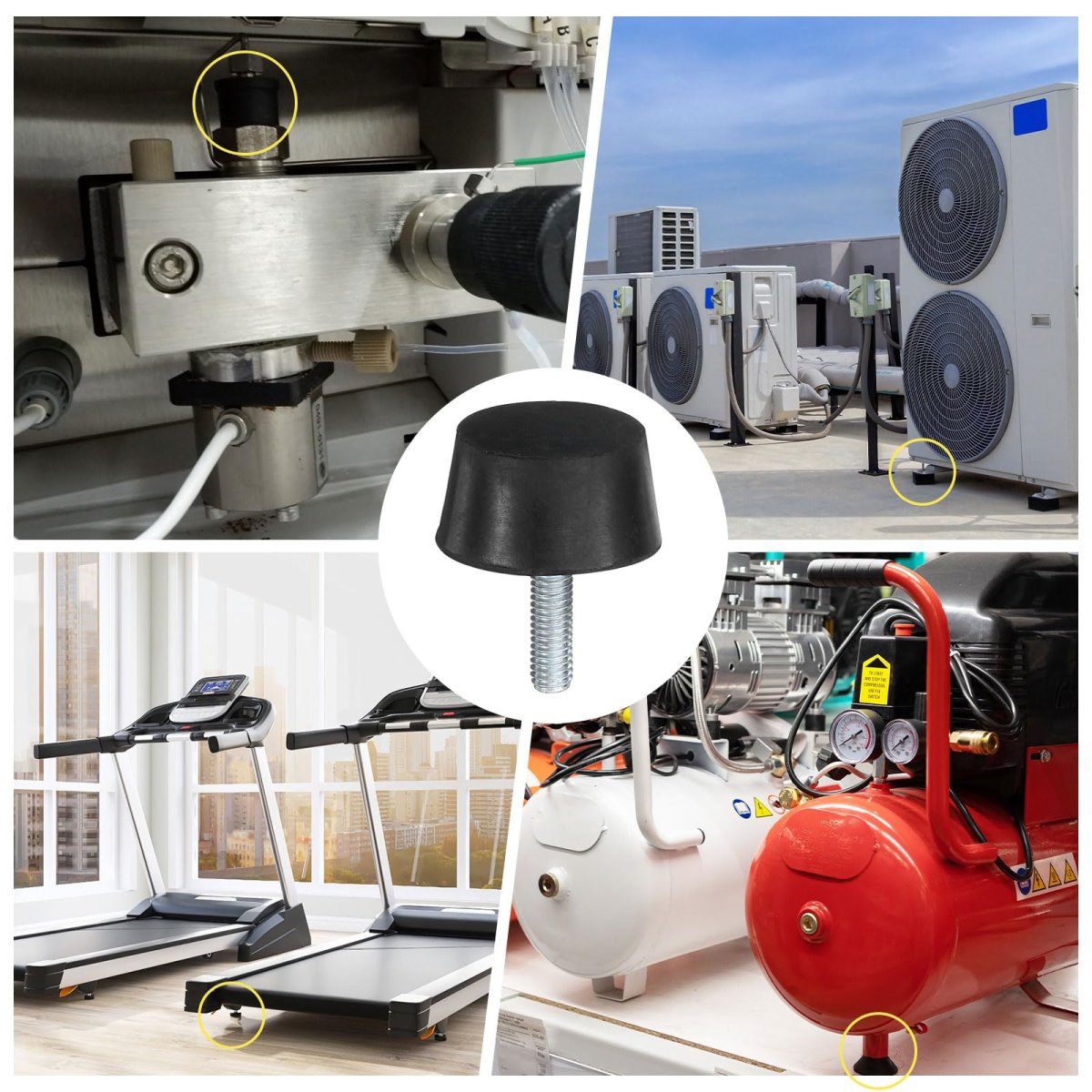 UNIVERSAL DESIGN - 1.18" x 0.59" rubber feet with M6 x 10mm Studs, set of 4 pieces adjustable furniture feet. [Material] - adjustable feet are made of rubber, are light in weight, have the characteristics of high elasticity, good wear resistance and shock resistance, can play a good buffering role, effectively protect the machine and are durable.. [Shock Absorption&Noise Reduction] - The levelling feet can absorb the vibration caused by electrical appliances, reduce noise and structural damage caused by these vibrations, protect the normal state of the equipment, and make it work more stably.. [Easy to Use] - The metal stud is a piece of termination bonded inside the rubber, which has better isolation performance. When using, just place the metal stud in the equipment hole. The rubber feet support dynamic performance and stability under lateral or lateral force.. [Wide Application] - The furniture leveller is suitable for various motors, mainly used as a damping element in industrial machinery and equipment, vibration plate equipment, fitness equipment, compressors, welding machines, engines, air conditioners, road rollers, etc..Other fine products