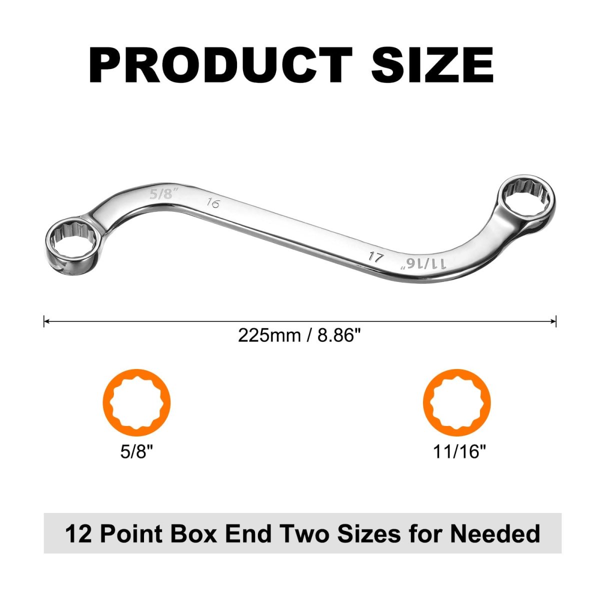 - 5 8 X 11 16 12-point S-style Box Wrench Double End S-shaped Chrome Plated Alloy Steel S Wrenches For Home Auto Bike Repair