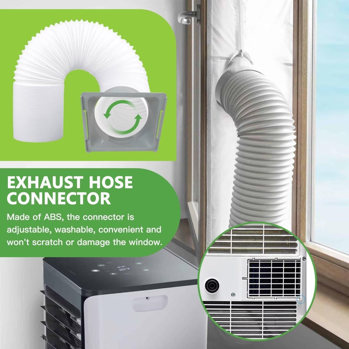 High-Quality Connector: Be made of ABS material, reliable and flexible, used for a long time.. Easy Installation: No need for tools and drilling, First, connected to the exhaust hose, and the second can be easily installed at the back exhaust port of the portable air conditioner. simple operation, convenient and practical.. Fitment:Fits Most 5.9"Hoses & Wide compatibility: This Square connector set is suitable for many portable 5.9" Air Conditioner units. Fits for both Clockwise and counterclockwise hoses.. Function: This adapter fits well, prevents leaks, and can tightly connect the exhaust hose to your AC unit for quick cooling.. Package Includes: 1 x 5.9" Exhaust Hose Adapter..Other fine products