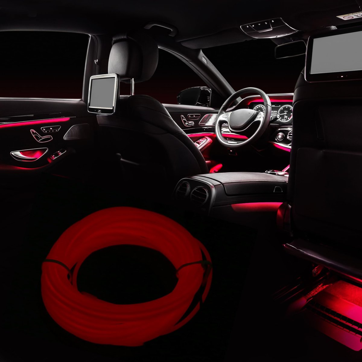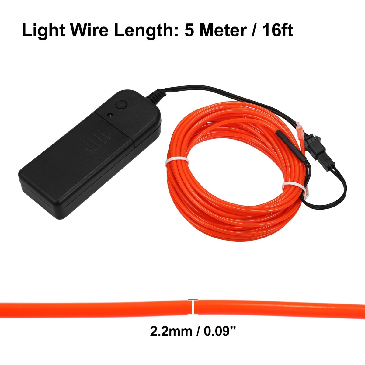 - 5 Meter 16ft Neon El Wire String Strip Red Cold Light Glow For Car Interior Decoration