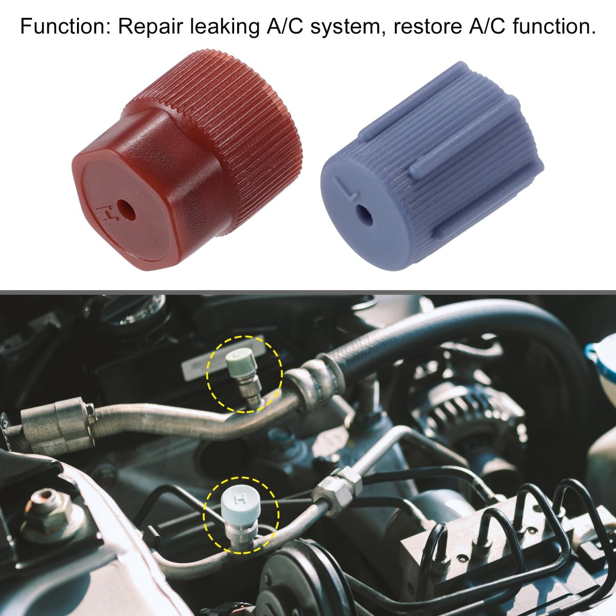 Suitable for: universal for A/C system of most cars, such as: for Mercedes Benz, for Buick, for Nissan, for Mazda, for Mitsubishi, for Chevrolet etc.. Durable Material: Made of good ABS material, sturdy and durable.. Function: Repair leaking A/C system, restore A/C function. and effectively prevent dust and particles from entering the filling port, avoid the filling port from clogging.. Easy to install, great replacement for old damaged A/C air conditioner valve caps.. Package Included: 1 x High Pressure A/C Caps, 1 x Low Pressure A/C Caps..Other fine products