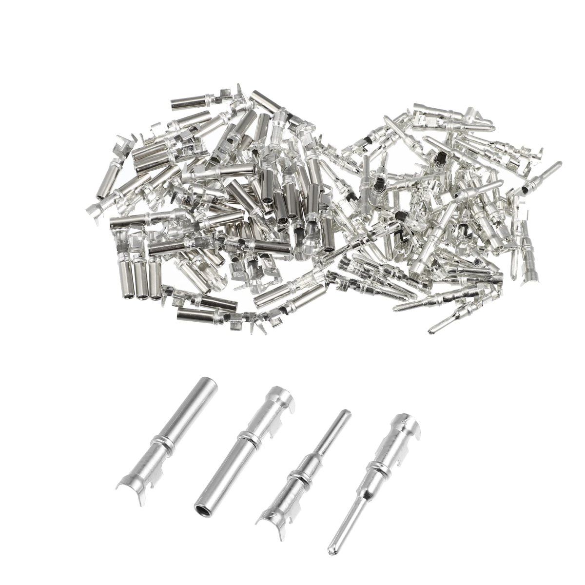 50 Pair Universal Metal Solid Contacts, Contact P/N: Pin: 1060-12-0122, Socket: 1062-12-0122; Compatible Wire Gauge: 12-14 AWG. Male Pin Size: 5.7x27mm / 0.22''x1.06''(D*H); Female Socket Size: 6x23.8mm / 0.24''x0.94''(D*H); Contact Size: 12#. Installation: Professional installation is highly recommended.. Connector Fitment: for HD30 Series, for HDP20 Series, for DRC Series, for HD10 Series, for DT Series, for DRB Series, for DTV Series, for AEC Series, for STRIKE Series, for JiffySplice. Package Included: 50 Pcs Male Pin, 50 Pcs Female Socket.Other fine products