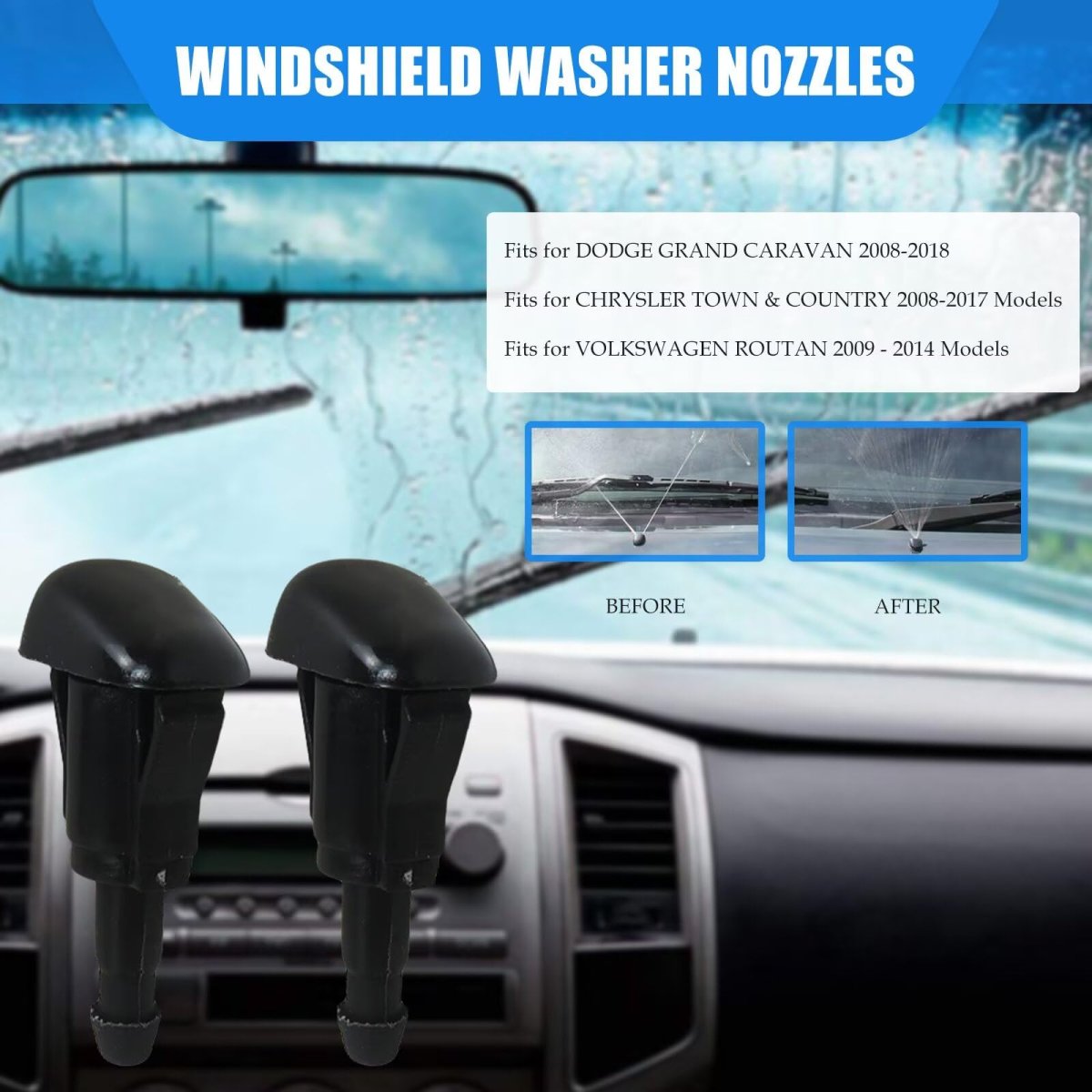 Xspeedonline 5113049AA 4Pcs Replacemnt for 08-18 DODGE GRAND CARAVAN, 08-17 CHRYSLER TOWN & COUNTRY, 09-14 VOLKSWAGEN ROUTAN Adjustable Front Windshield Wiper Washer Jet Nozzle Spray Sub Assembly. Replace Part Number: 5113049AA. Fitment: for DODGE GRAND CARAVAN, for CHRYSLER TOWN & COUNTRY, for VOLKSWAGEN ROUTAN Models. You will Receive: 4x Windshield Wiper Washer Jet Nozzles.Other fine products