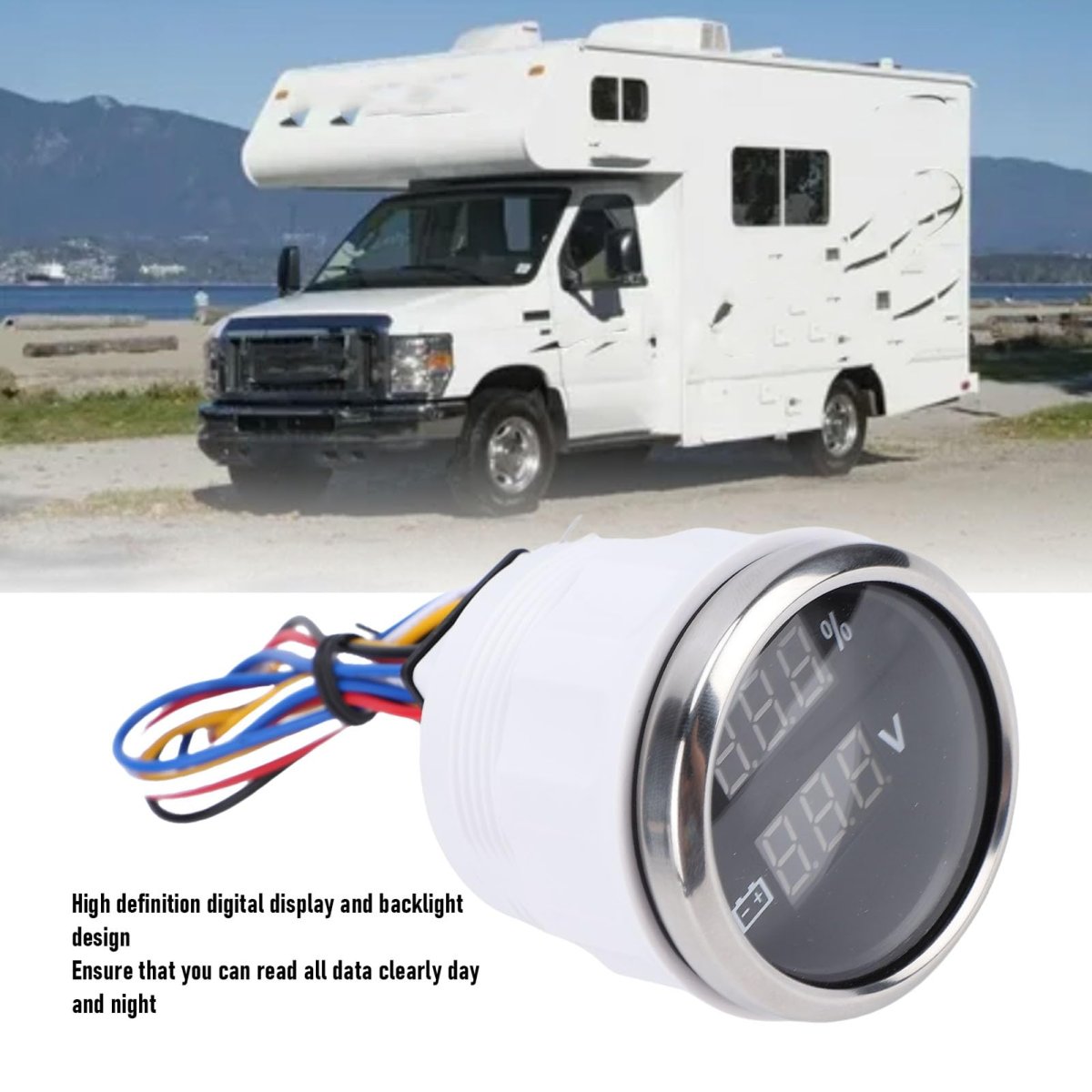 DUAL FUNCTIONALITY: This 52mm digital display gauge combines water level and voltage monitoring in one unit. Enjoy precise digital readouts that enhance safety during driving or navigation, allowing for real-time tracking of critical metrics.. VERSATILE APPLICATION: Designed for use across various vehicles and vessels, this multifunctional water level voltage meter is perfect for cars, RVs, trucks, boats, and yachts. Its adaptability makes it a valuable addition to different applications.. CLEAR BLUE DISPLAY: The gauge features a vibrant blue digital display that offers excellent visibility, ensuring easy reading at a . The added white backlight improves readability in low-light conditions, making data access straightforward.. STAINLESS STEEL CONSTRUCTION: Built from durable stainless steel, this water level voltage digital meter is designed to withstand harsh environments, ensuring longevity and reliable performance. Ideal for long-term use, it resists damage.. COMPACT AND STYLISH DESIGN: With a compact 52mm diameter, this stylish gauge saves space while enhancing the appearance of your dashboard or control panel. It seamlessly integrates into various installations while maintaining essential functionality..