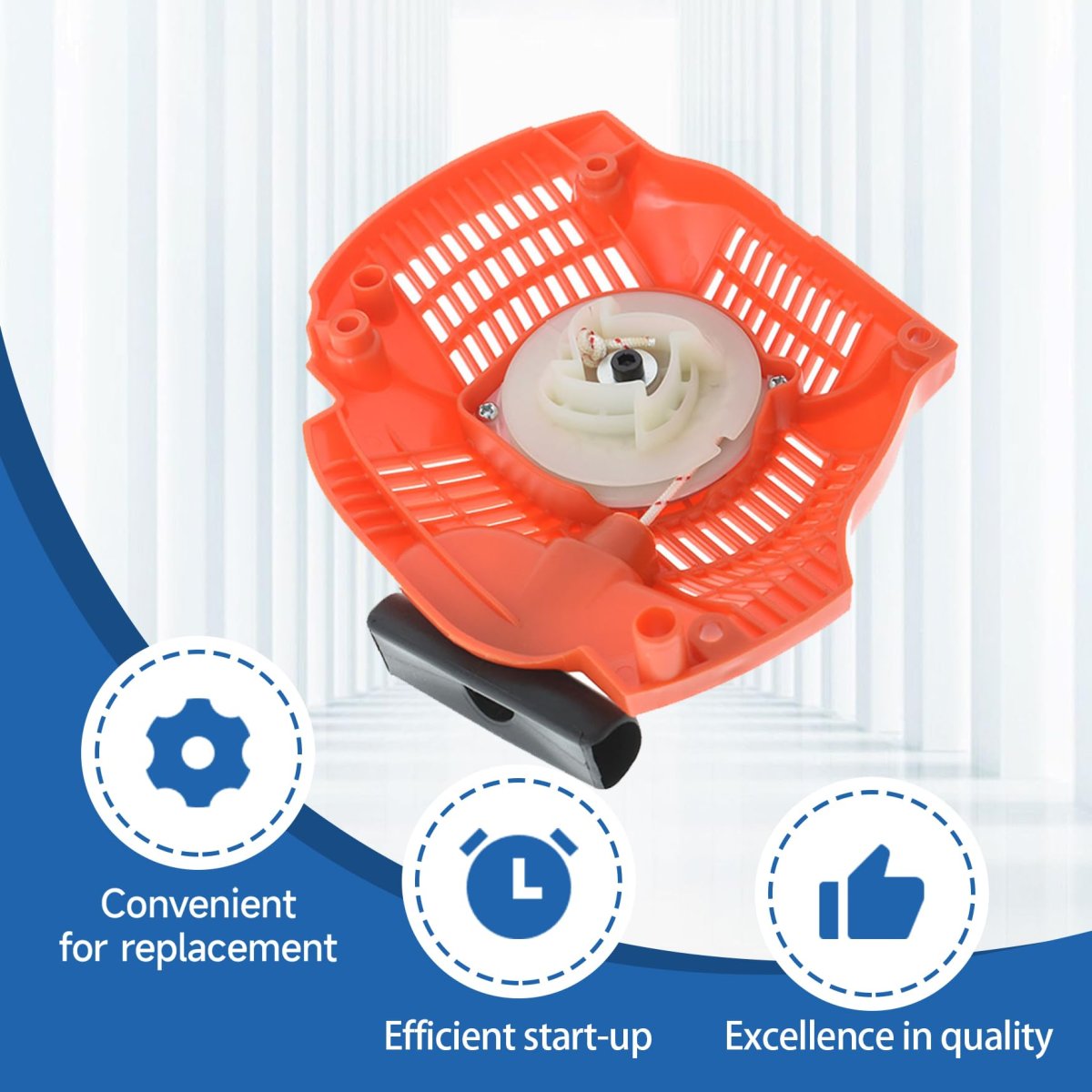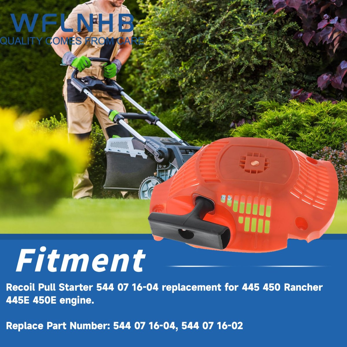 Features a smooth: Retracting drawstring, which can provide a stable pulling force, ensuring reliable starting every time and reducing the trouble of starting failures.. Replace Part Number: 544 07 16-04, 544 07 16-02.. Adaptation: Recoil Pull Starter 544 07 16-04 replacement for 445 450 Rancher 445E 450E engine.. Easy to installThe recoil pull starter is easy to install, with a simple structure that allows you to complete the installation quickly without the need for professional tools or skills..Other fine products