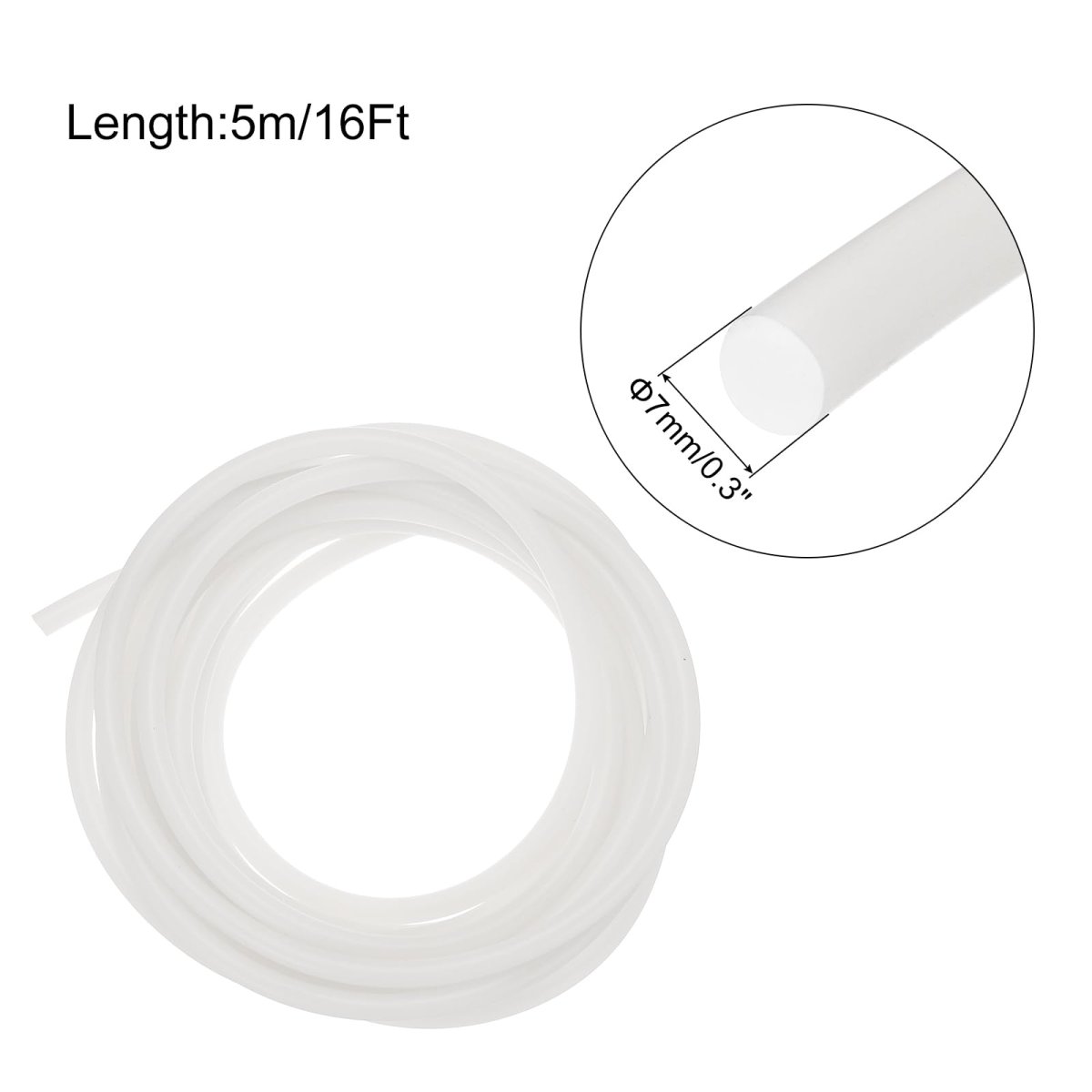 The seal strip has good resilience, no deformation, tear resistance and durability. High and low temperature resistance, corrosion resistance, aging resistance.Easy to cut, flexible, in line with any shape; Silicone solid round strip, high temperature resistance up to 250 degrees, low temperature resistance can be as low as minus 50 degrees, has a good thermal insulation effect, is a kind of sealing insulation material.. Material: Silicone Rubber; Outer Diameter: 7mm/0.28Inch;Length:5m/16.5Ft; Color:White. Silicone solid round strip door seal drowns out noise, has a good cushioning effect, weather proof, oil resistance, chemical corrosion resistance, dust proof, shock resistance, sealing, moisture resistant, insulating, anti-vibration, anti-collision, and so on.. Silicone seal strip has been widely used in industrial machinery and equipment for shock absorption, noise reduction and friction reduction, and is often used in daily life.. When using this silicone seal strip, it is important to consider the dimensions to ensure it fits your specific application..Other fine products