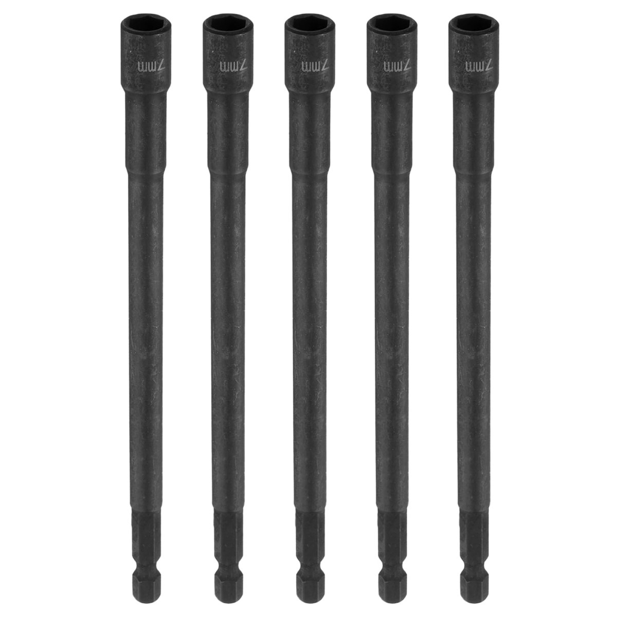 - 5pcs Hex Nut Driver Drill Bit 7mm Metric 6-point Socket 1 4 Shank Magnetic Setter Cr-v Steel Bolt Sockets For Power Drills
