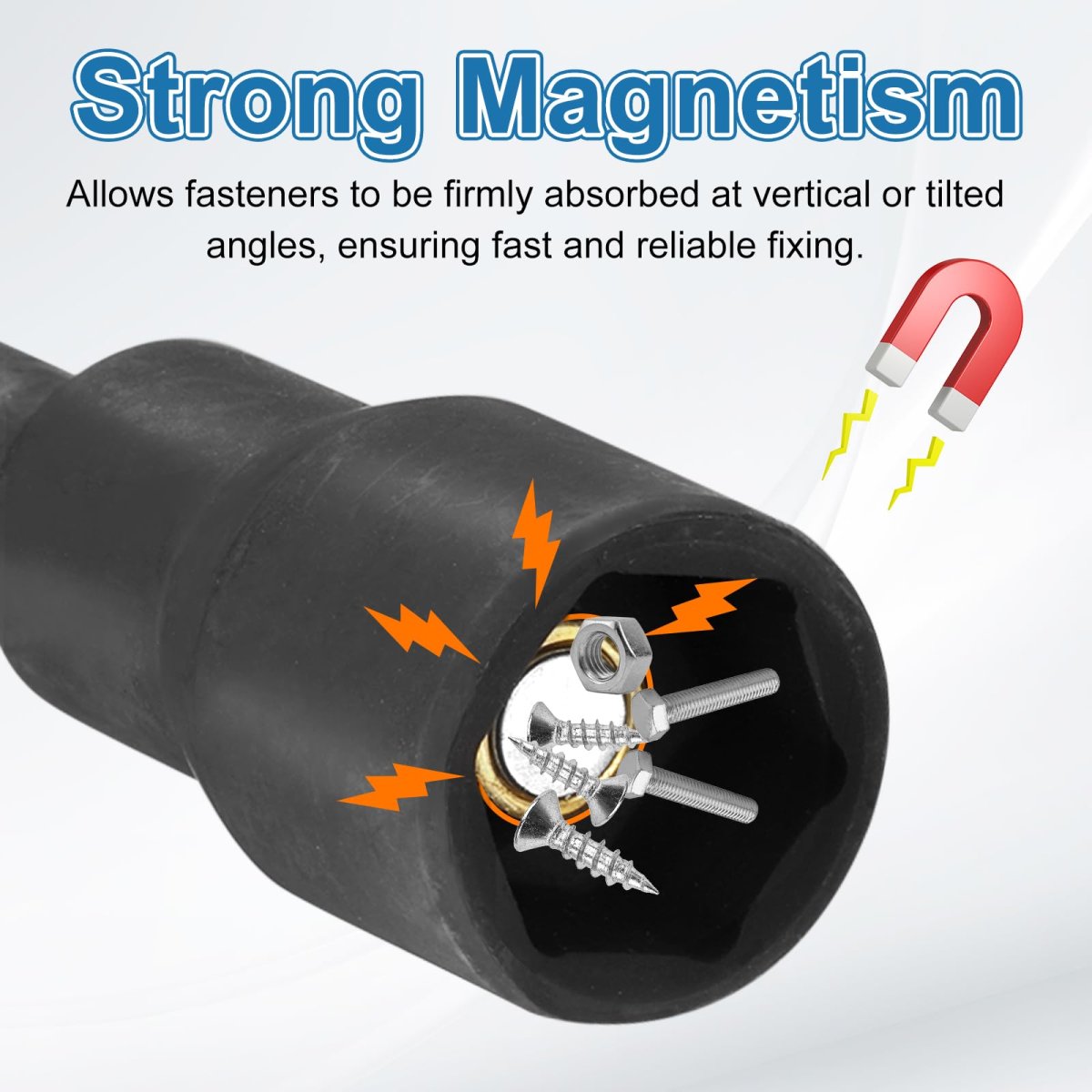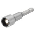 Nut Driver Drill Bit Size: 8mm metric 6-point socket; 1/4" (6.35mm) hex shank, 150mm / 5.91" total length. Nut driver bit is crafted to engage effectively with hexagonal socket screws and bolts. The thickened inner wall enhances durability and strength to withstand high stress.. Magnetic & Hexagonal: Magnetic tip securely holds screws and bolts during application, reducing the risk of drops and improving overall efficiency. Hexagonal design ensures a solid grip and facilitates efficient torque transfer, minimizing effort.. CR-V Steel & Phosphate Black: The hex nut driver is made of chrome vanadium steel, ensuring high strength, durability, wear resistance and corrosion resistance, and the phosphate black coated enhances drilling performance by providing increased corrosion resistance, reducing friction, and improving tool lifespan... Widely Used: Sockets are suitable for tasks that require precise driving of hexagonal nuts and bolts, such as assembling furniture, machinery repairs, and automotive maintenance. They are also perfect for home DIY projects where secure and quick fastening is essential.. Tips: Insert the nut driver bit into the chuck of a compatible drill or driver. Align the tool with the fastener and apply steady pressure. Ensure the tool is correctly secured in the drill's chuck to prevent detachment. Always check that the nut or bolt matches the driver size..Other fine products