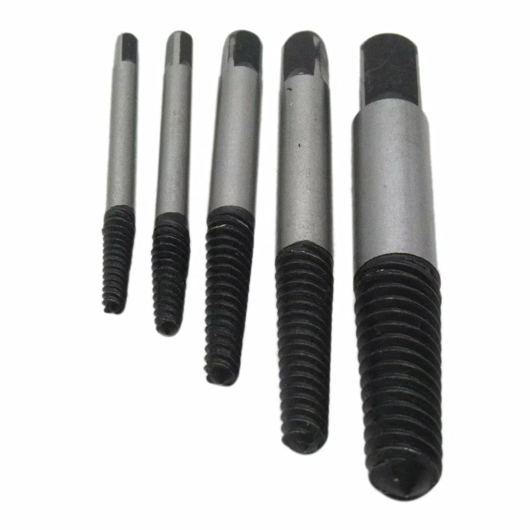 100% New and made with components available, stable characteristics, high reliability.. Suitable for remove that is broken screws, bolts, and studs without damaging bolt or hole threads.. Size: 1/8"-1/4" (3mm-6mm); 1/4"-5/16" (6mm-8mm); 5/16"-7/16" (8mm-11mm); 7/16"-9/16" (11mm-14mm); 9/16"-3/4" (14mm-18mm).. Fast, convenient, disassemble screws, tacks. The oil on the item is to prevent oxidation and rust.. Package Includes: 5 Piece Screw Extractor Set as Picture Show..Other fine products