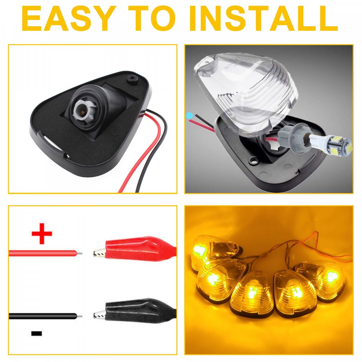 - 5x Clear Cab Marker Roof Running Lights With Amber T10 Led Light Bulbs Assembly For Ford E150 E250 E350 E450 F150 F250 F350