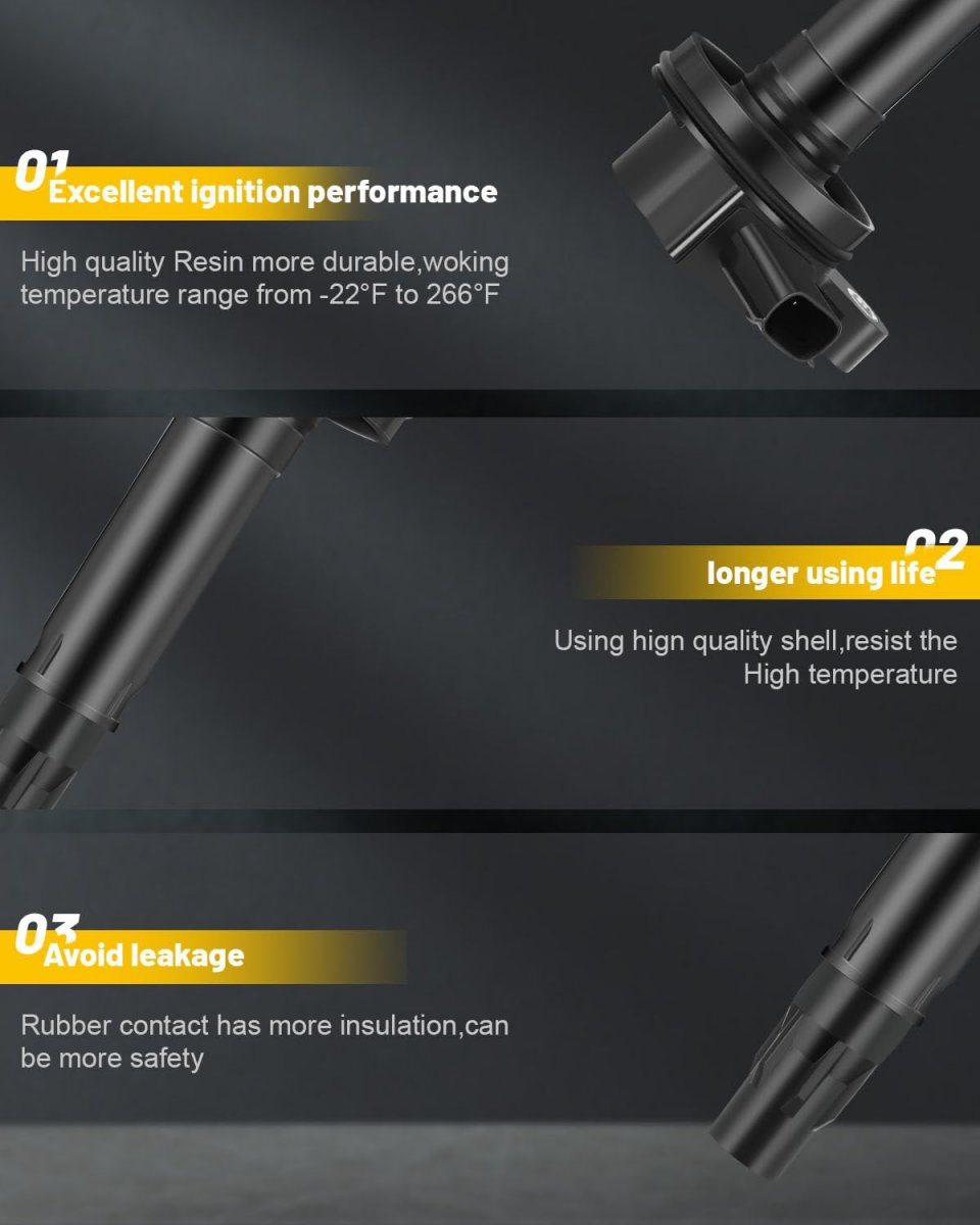 Compatible Vehicle -for ford 2007-2016 Edge 3.5L, 2011-2014 Edge 3.7L, 2011-2017 Explorer 3.5L, 2015-2017 for F-150 3.5L, 2011-2014 for F-150 3.7L, 2009-2017 Flex 3.5L, 2010-2012 Fusion 3.5L, 2013-2017 Police Interceptor Sedan 3.5L 3.7L, 2013-2017 Police Interceptor Utility 3.7L, 2008-2016 Taurus 3.5L, 2008-2009 Taurus X 3.5L, 2015-2018 Transit-150 3.7L, 2015-2018 Transit-250 3.7L, 2015-2018 Transit0350 3.7LCompatible with for Lincoln 2009-2016 MKS 3.7L, 2010-2016 MKT 3.7L, 2007-2010 MKX 3.5L. Replaces OEM Part Numbers - 610-00119, CY0118100Z02, 7T4E-12A375-EE, 7T4E-12A375-ED, 7T4E-12A375-EC, 7T4E-12A375-EB, 7T4E12A375EE, 7T4E12A375ED, 7T4E12A375EC, 7T4E12A375EB, C1595, DG520, DG-520, UF553, UF-553. Premium Quality Material - You'll have an easy time mounting these coils due to their lightweight and winding construction. The copper material ensures maximum power delivery to the spark plugs. They come pre-greased for direct replacement.Superior winding process yields greater wire length control, which means less chance of a breakdown of the wire coating and insulation. Material resists pinholes and cracks that can cause failures.. Function & OEM Fit - OCPTY Ignition Coils are engineered for original equipment and replacement applications.Every component either matches or improves on the OE design to ensure fast and easy installation with superior performance and reliability.The ignition coil acts like a transformer.the ignition coil transforms the electrical energy from the vehicle battery into high voltage, saves it briefly and then emits it as a high voltage current pulse to the spark plug..Other fine products