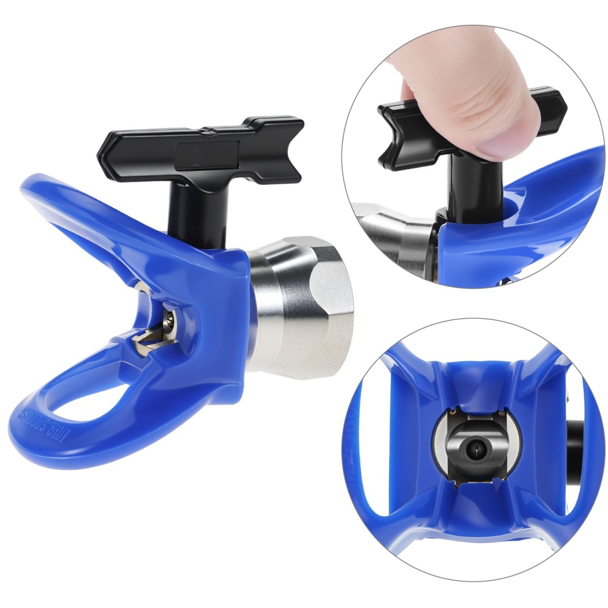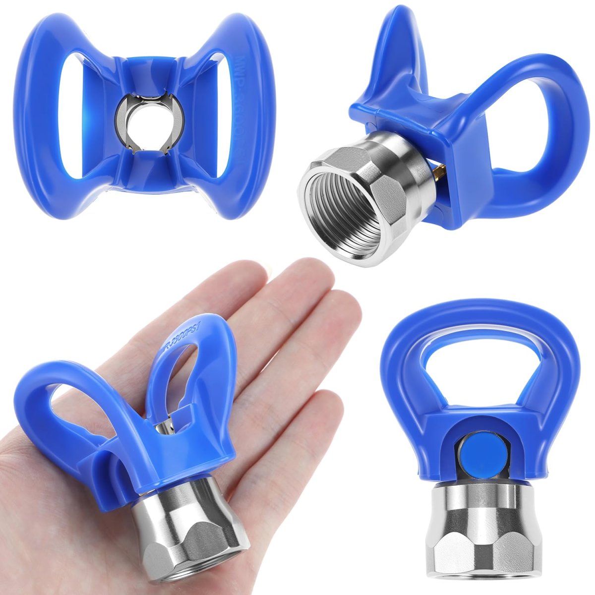 Package Contents: Includes 5 pcs different models of nozzle tips (211,315,415,517,623).. Material: 304 stainless steel handle and tungsten carbide hole. Stainless steel head gasket and nylon.. Features: Leakproof, wear-resistant, safe, easy to clean, long-lasting use.. Application: Ideal for garage or spray stations; helps organize spray accessories.. Design: Reversible airless cleaning switch nozzle design for quick cleaning and clog prevention..Other fine products
