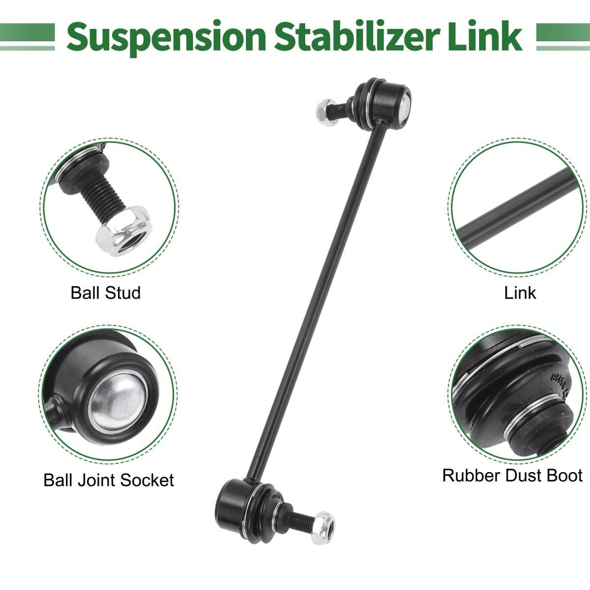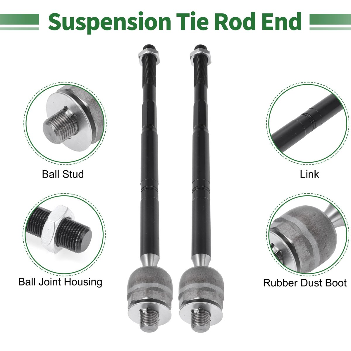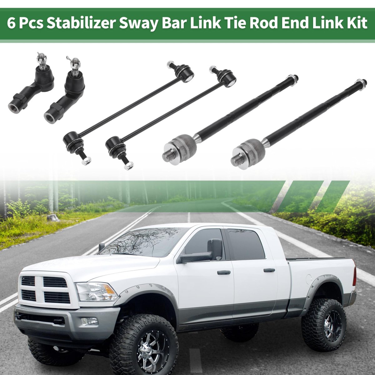 FITMENT: for Dodge Dart 2013-2016. OE Number:K750691/EV801132/ES801128/ES801129; [PACKAGE INCLUDES]:2 x Front Stabilizer Sway Bar Link, 2 x Front Outer Tie Rod End Link, 2 x Front Inner Tie Rod End Link; [PLACEMENT ON VEHICLE]: Front, Outer, Inner. FUNCTION: This suspension kit can fix the clunking noise when going over small bumps, and uneven tire wear, prevent excessive leaning during turns, improve the car's stability, and provide smooth operation when driving.. WHEN TO REPLACE: Signs your suspension system needs replacement include clunking noises during turns and bumps, loose or misaligned steering wheel, poor handling, uneven tire wear, and visible damage in the suspension system.. MATERIAL: Made of durable material and solid strength structure, which is wear-resistant and corrosion-resistant, making it more stable during operation. No manual included, professional installation recommended..Other fine products
