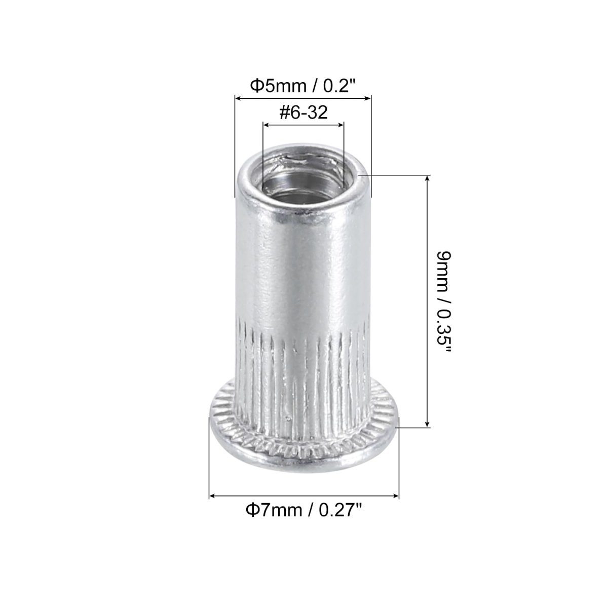 6-32 Rivet Nuts Aluminium Alloy Knurled Flat Head Threaded Insert Nut Silver 50pcs