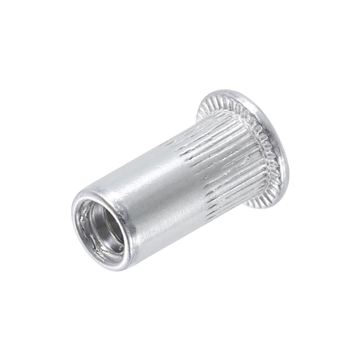 10-32 Rivet Nuts Aluminium Alloy Knurled Flat Head Threaded Insert Nut Silver 100pcs