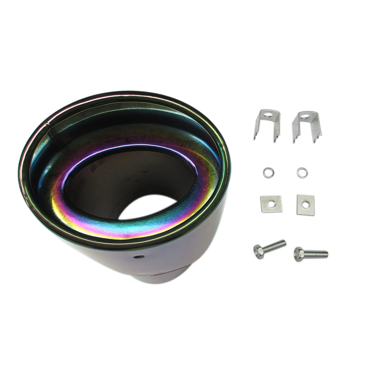 Performance - Good quality stainless steel mirror polished;Protect the original tips from Sun and Rain,avoid rusting and deformation. Features our muffler tips won't change the function of your car, instead they will add style and a sports effect to really make your car stand out in a crowd. Fitment - Universal fits 2.5" Inlet exhaust system.Fit Pipes Diameter 1.5" to 2.1". Easy to install there is no need to replace any parts.No weld and drill needed. Just fix the screw to the appropriate location of tailpipe by Wrench.Other fine products