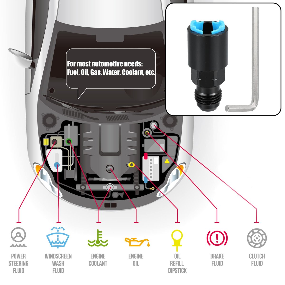 - 6an Male Car Fuel Hose Fitting Adapter An6 To 3 8 Quick Disconnect Female Push On Efi With Wrench Aluminum Black