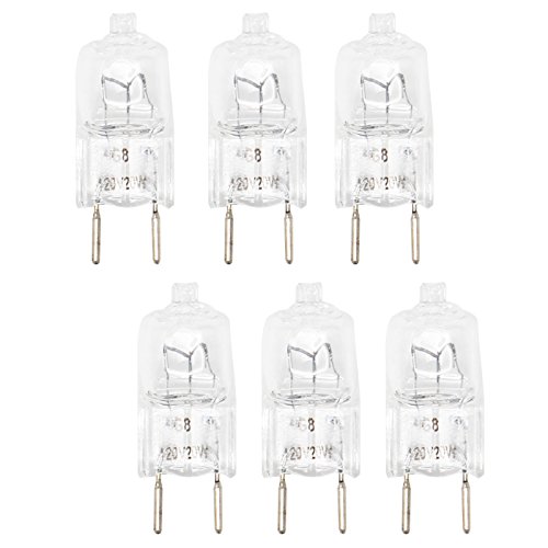 This product is not affiliated with any OEM brands and is not covered under any warranties offered by the original manufacturers. Any warranties for this product are offered solely by Upstart Components. All mentions of brand names or model descriptions are made strictly to illustrate compatibility. Features: Replacement General Electric PVM2170SR1SS Light Bulb; Quantity: 6 Replaces Part Number WB25X10019 Light Bulb. Same great brightness guaranteed. Superior-crafted filaments for long-lasting brightness Quality glass and packaging so bulbs will show up in factory condition. Specifications: G8 Base 120V 20W Halogen bulbs.Other fine products