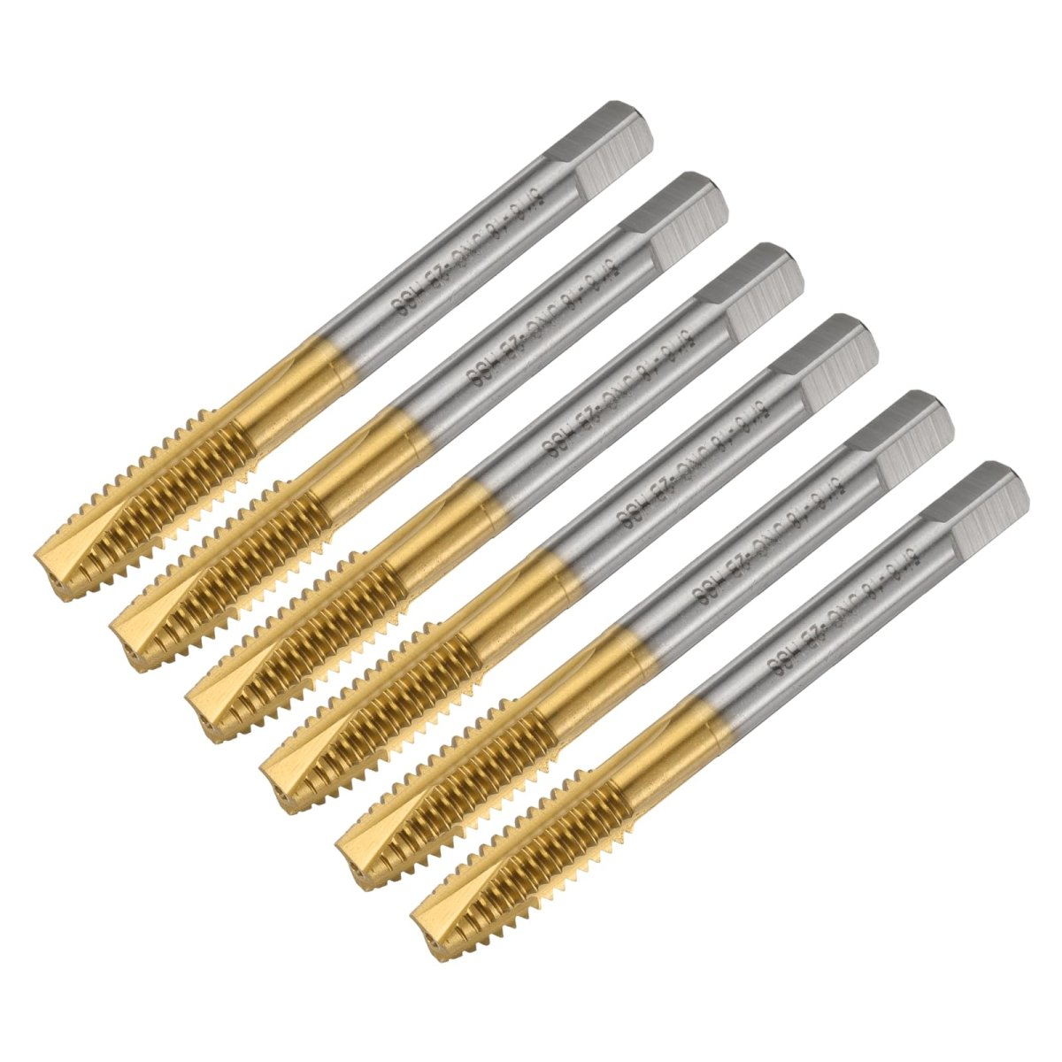 - 6pcs 5 16-18 Unc B2 Spiral Point Thread Tap Screw Threading Tapping Tool Titanium Coated 6542 High Speed Steel Machine Taps Bit
