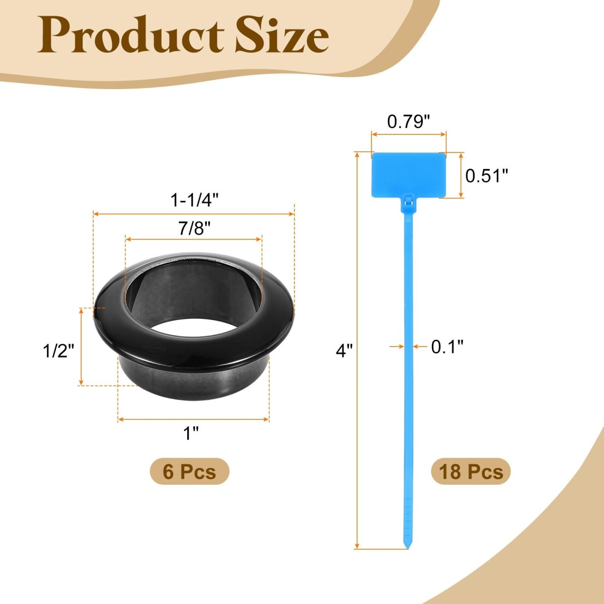 Size & Package: This grommet fits a hole of 25mm/ 1 inch diameter, the inner diameter is 22mm/ 7/8 inch, the outer diameter is 32mm/1-1/4 inch, and the height is 12mm/1/2 inch. You will receive 6ps grommets and 18ps marked cable ties. Material: The desk grommet is made of ABS plastic material, and the surface is electroplated, which is strong, anti-oxidation, non-fading, wear-resistant, corrosion-resistant, and durable. Design: The cable grommet has a medium aperture to accommodate partial cables, protecting wires from friction and damage. The desktop hole cover has a metallic luster, a beautiful appearance, well match your desktop. Installation: The installation of the table hole cover is easy, just need to measure the hole diameter and install it directly, or drill a hole according to the mounting hole diameter, and then insert the desk grommet into the hole. Using the included nylon cable ties can reduce cable clutter and keep cables organized and clean. Wide Application: The cable grommets can be applied to computer desks, office desks, computer components, office equipment, entertainment systems, etc. Widely used in the office, home, shop, and more.Other fine products