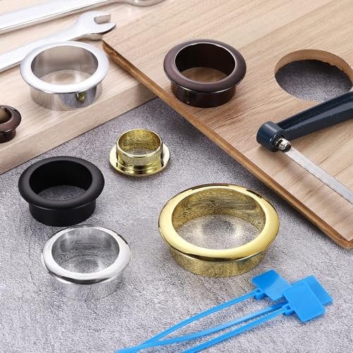 Size & Package: This grommet fits a hole of 35mm/ 1-3/8 inch diameter, the inner diameter is 33mm/ 1-5/16 inch, the outer diameter is 45mm/1-3/4 inch, and the height is 17mm/11/16 inch. You will receive 6ps grommets and 18ps marked cable ties. Material: The desk grommet is made of ABS plastic material, and the surface is electroplated, which is strong, anti-oxidation, non-fading, wear-resistant, corrosion-resistant, and durable. Design: The cable grommet has a large aperture and can accommodate multiple cables, protecting the wires from friction and damage. The desktop hole cover has a metallic luster, a beautiful appearance, well match your desktop. Installation: The installation of the table hole cover is easy, just need to measure the hole diameter and install it directly, or drill a hole according to the mounting hole diameter, and then insert the desk grommet into the hole. Using the included nylon cable ties can reduce cable clutter and keep cables organized and clean. Wide Application: The cable grommets can be applied to computer desks, office desks, computer components, office equipment, entertainment systems, etc. Widely used in the office, home, shop, and more.Other fine products
