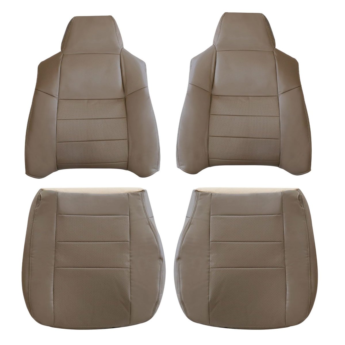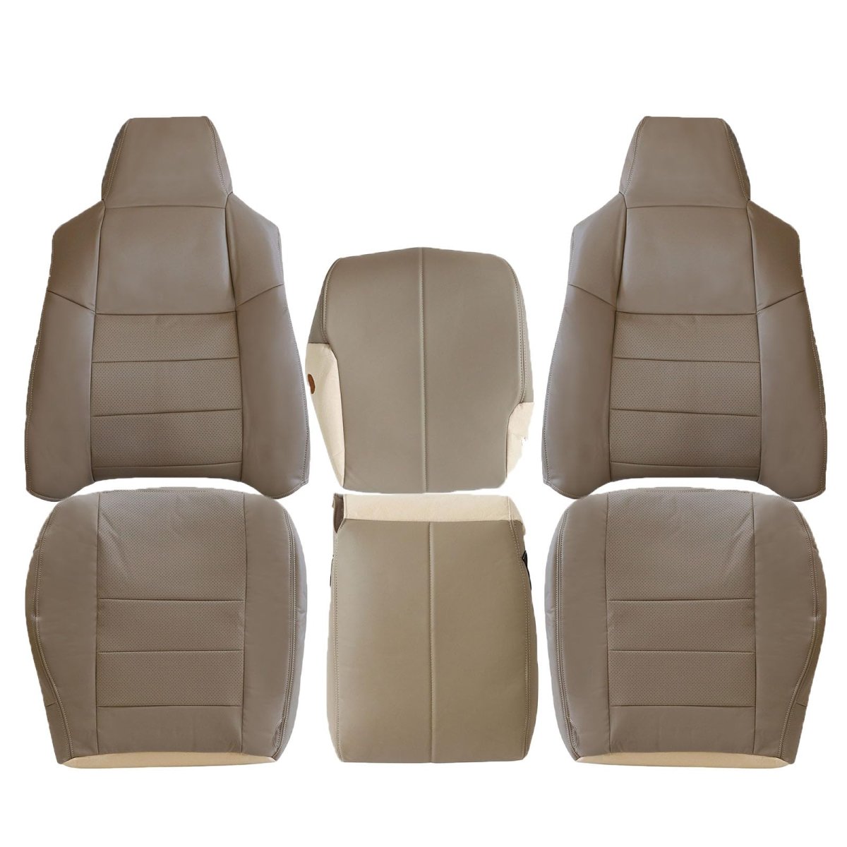 - 6pcs Driver Passenger Bottom Top Middle Seat Perforated Leather Replacement Covers Tan For Ford F250 F350 F450 F550 Lariat