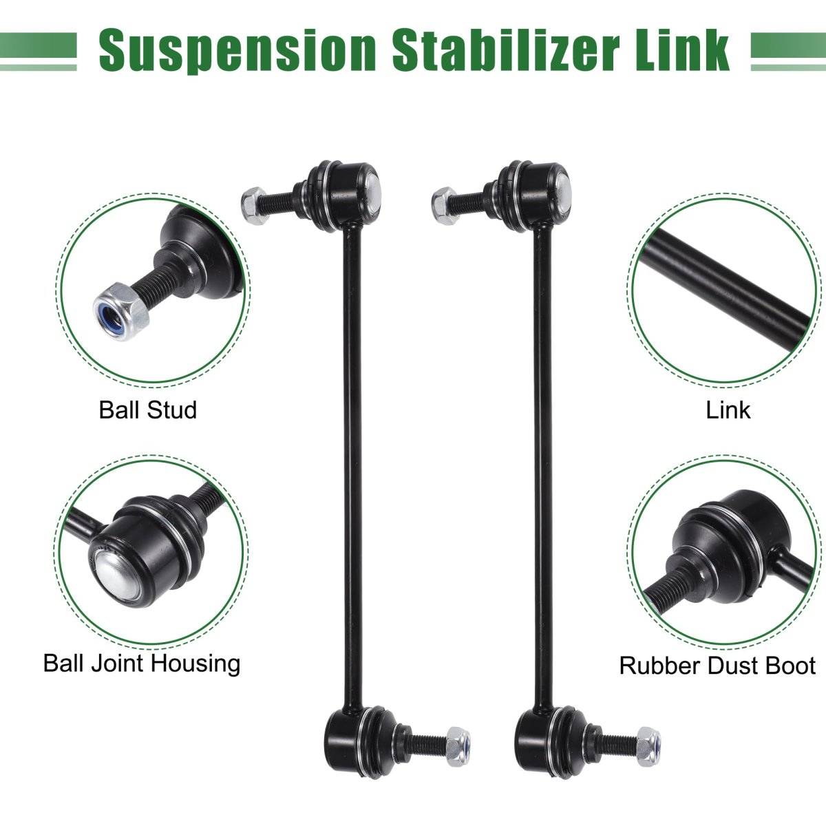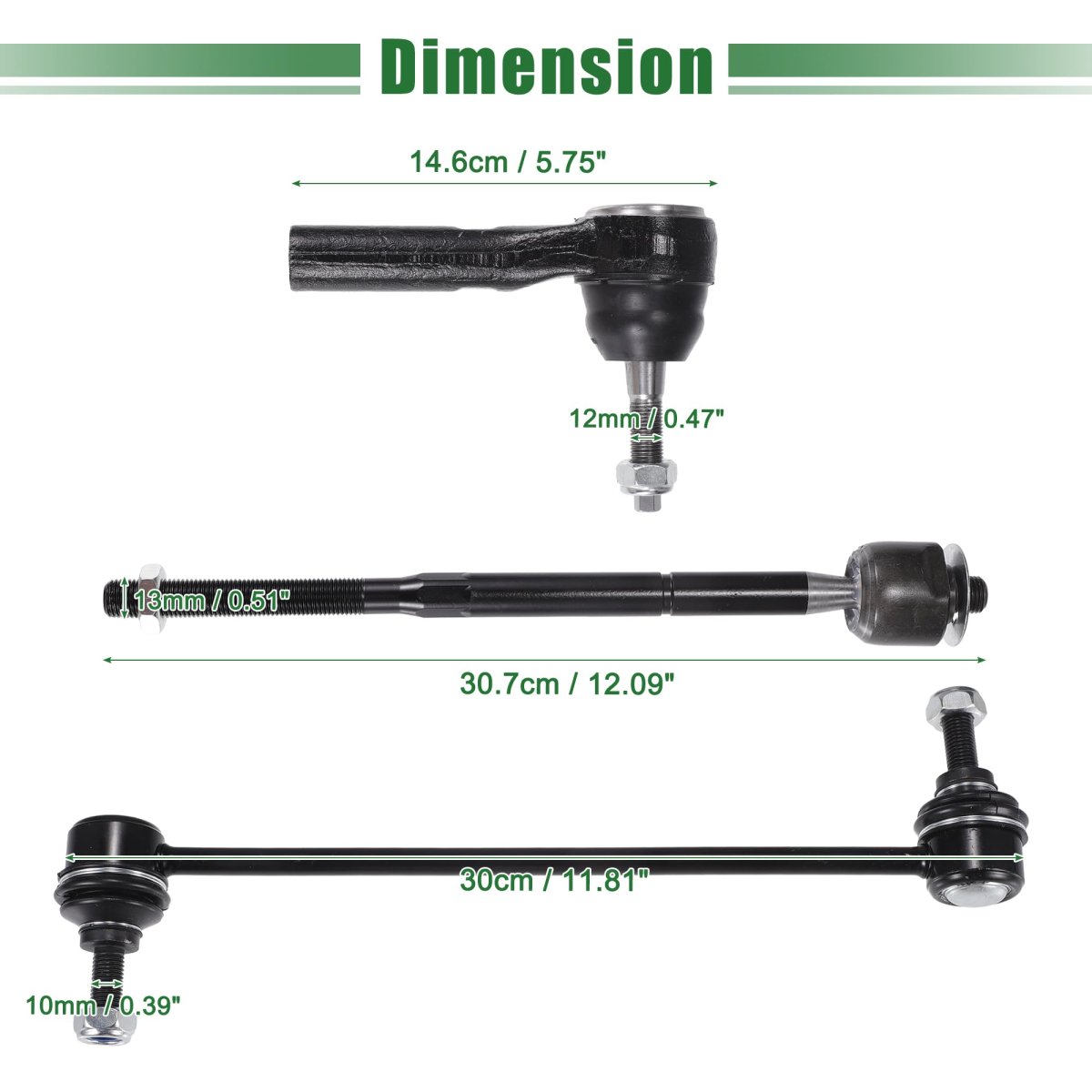 FITMENT: Tie Rod Ends for Dodge Caliber 2007-2012, for Jeep Compass 2007-2017, for Jeep Patriot 2007-2017. OE Number:K80258/ES800408/EV80645; [PACKAGE INCLUDES]: 2 x Front Inner Tie Rod Ends, 2 x Front Outer Tie Rod Ends, 2 x Front Stabilizer Bar Links; [PLACEMENT ON VEHICLE]: Front, Inner, Outer, Left, Right. FUNCTION: This suspension kit can fix the clunking noise when going over small bumps, and uneven tire wear, prevent excessive leaning during turns, improve the car's stability, and provide smooth operation when driving.. WHEN TO REPLACE: Signs your suspension system needs replacement include clunking noises during turns and bumps, loose or misaligned steering wheel, poor handling, uneven tire wear, and visible damage in the suspension system.. MATERIAL: Made of durable material and solid strength structure, which is wear-resistant and corrosion-resistant, making it more stable during operation. No manual included, professional installation recommended..Other fine products