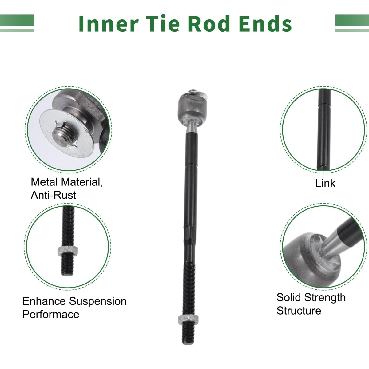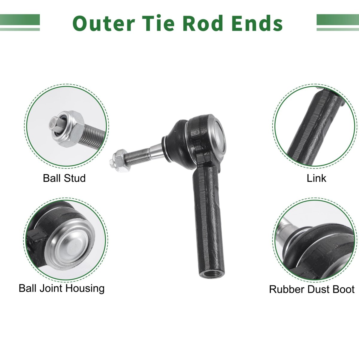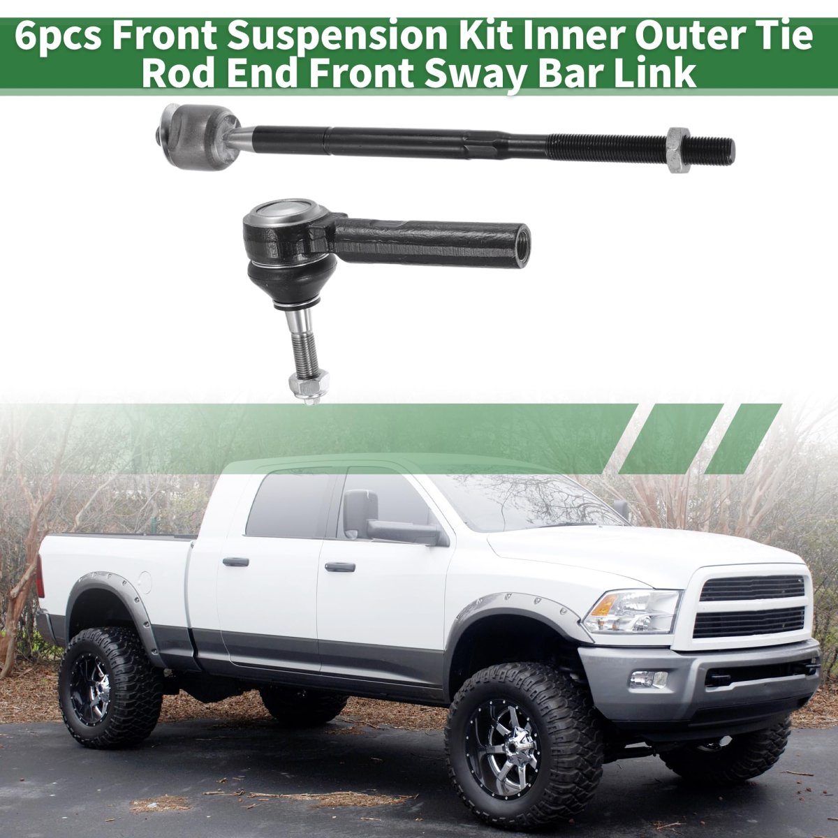 FITMENT: Tie Rod Ends for Dodge Journey 2009-2016. OE Number:K750382/EV800611/ES800408; [PACKAGE INCLUDES]: 2 x Front Sway Bar Links, 2 x Front Inner Tie Rod, 2 x Front Outer Tie Rod; [PLACEMENT ON VEHICLE]: Front, Inner, Outer, Left, Right. FUNCTION: This suspension kit can fix the clunking noise when going over small bumps, and uneven tire wear, prevent excessive leaning during turns, improve the car's stability, and provide smooth operation when driving.. WHEN TO REPLACE: Signs your suspension system needs replacement include clunking noises during turns and bumps, loose or misaligned steering wheel, poor handling, uneven tire wear, and visible damage in the suspension system.. MATERIAL: Made of durable material and solid strength structure, which is wear-resistant and corrosion-resistant, making it more stable during operation. No manual included, professional installation recommended..Other fine products
