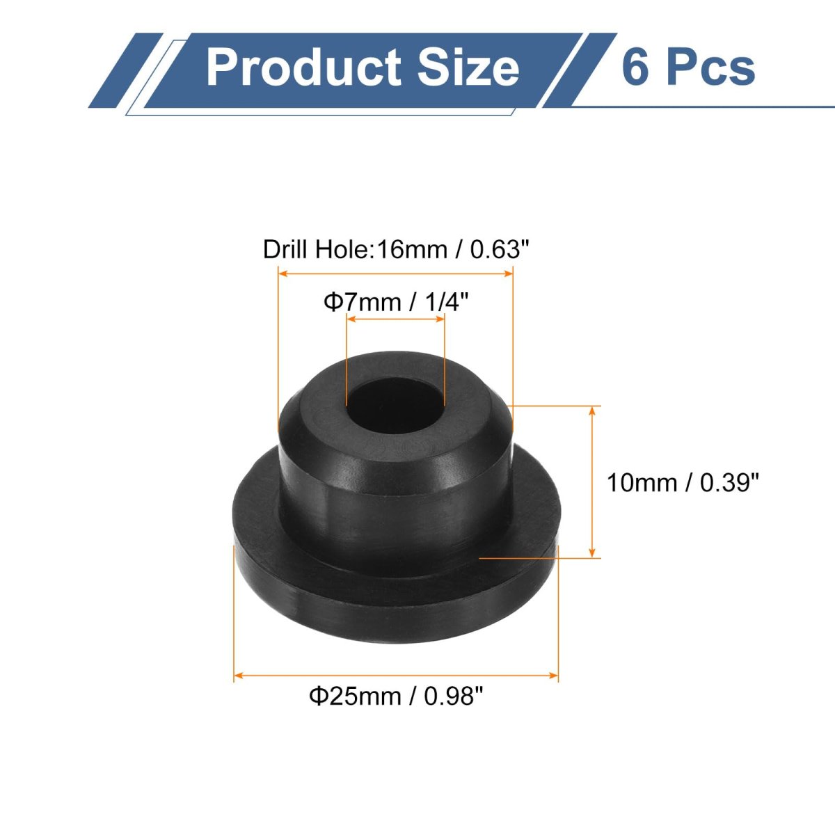[Rubber Grommet] - Drill Hole: 16mm/0.63-inch; Inner Dia.: 7mm/0.28-inch; Upper Dia.: 25mm/0.98-inch; Slot Height: 10mm/0.39-inch; Package Content: 6Pcs x Silicone Rubber Grommets. [Material] - The grommet is made of flexible and pressure-resistant silicone rubber, high temperature and low temperature resistance, dust-proof and flame-retardant, long service life, good softness, not easy to deform and crack during use. [Function] - Silicone rubber gaskets are usually used to protect or cover holes and protect pipes or wires from scratches and harm from rough corners or rough surfaces, safely and effectively clamping wires. [Wide Application] - These silicone rubber wire grommets are useful in many scenes, such as mechanical equipment, computer equipment, lighting equipment, electrical engineering, auto parts equipment, etc..Other fine products