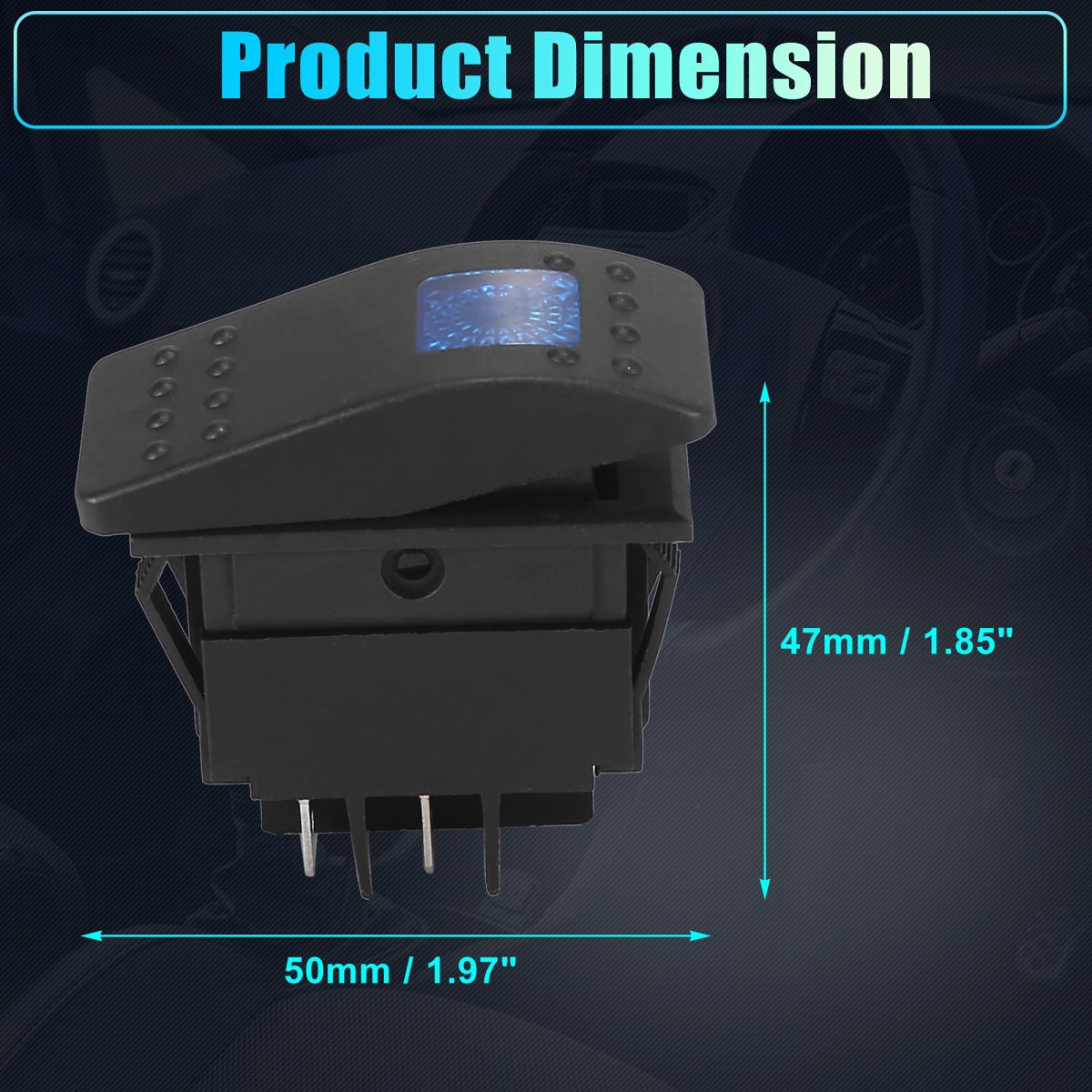 Function: The rocker switch is installed on the car center panel to control the LED light bar of the car.. Feature: It is removable. Placement on Vehicle: Front; Voltage: DC 12V; Amperage: 20Amp; Pin Number: 4. Durable Material: Made of waterproof ABS plastic and metal material, durable and long service life.. Easy Installation: With the pins, you can install the switch on the center panel easily. It is easy and simple to set it up.. Package Include: 6 x Blue LED Light Rocker Switches.