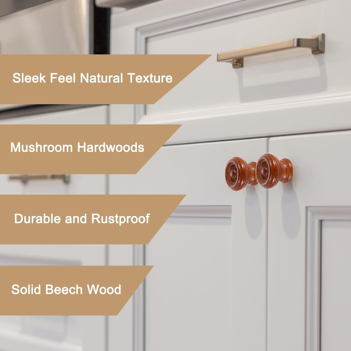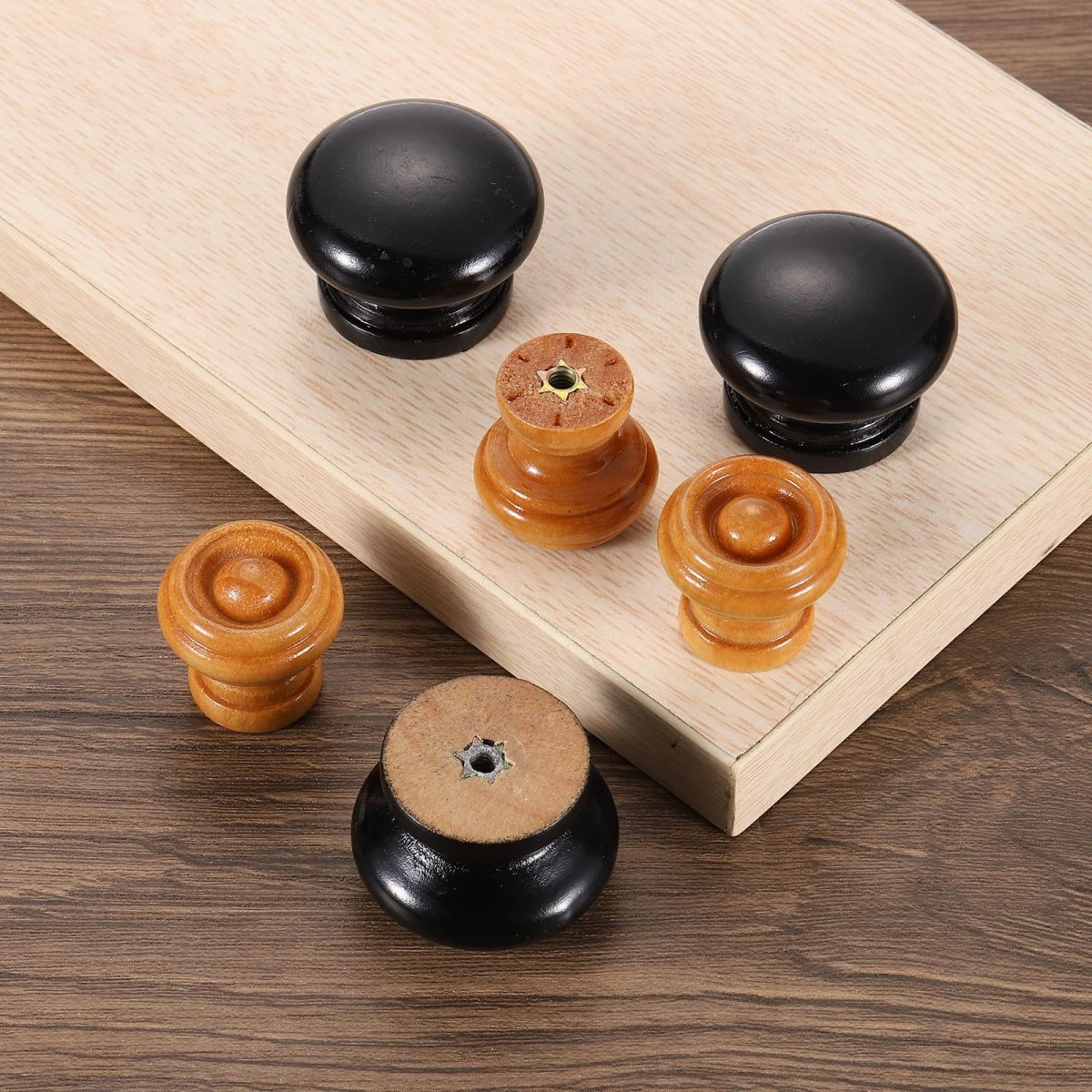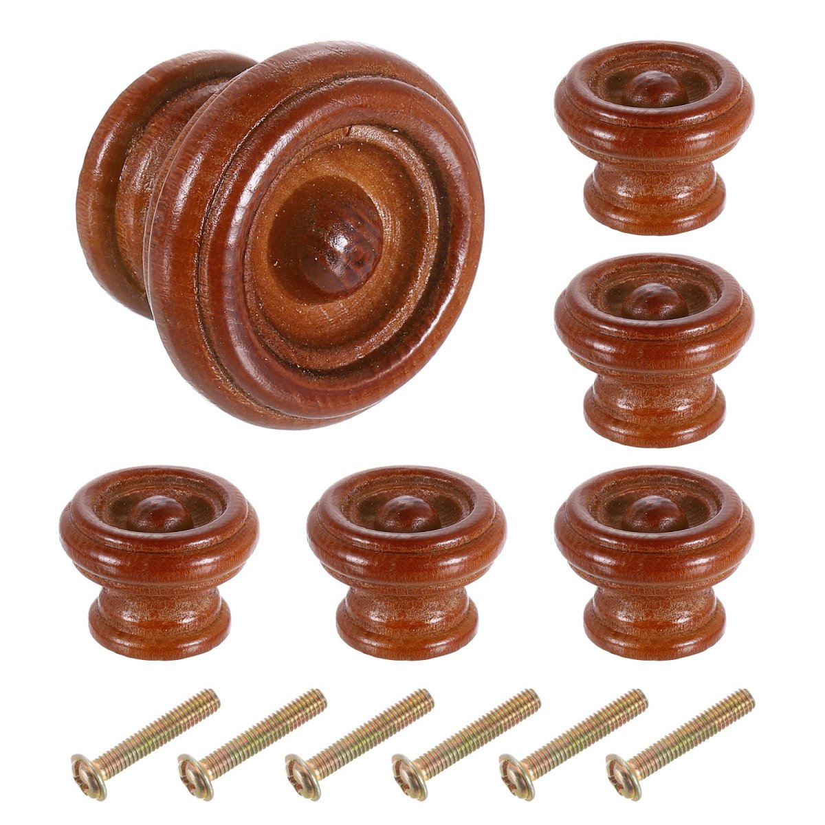 Cabinet Knobs Information: Each drawer knob measures approximately 37mm/1.5" in diameter and 27mm/1.1" in height; You will get 6pcs drawer knobs and 6pcs M4 screws.. Material - The wooden knob is made of wood, Featured with glossy spray paint, the round wood knobs are rustproof and durable.. Practical Design - Featuring a mushroom shape, and a beautiful and simple design, the round wood dresser knobs are a replacement for various furniture pull.. Application: Cabinet knobs can replace your old or broken pull knob and can be applied to bookcase drawers, cabinet drawers, closet drawers, dresser drawers, kitchen drawers, shoe cabinets, and other drawers.. Note: Every wood knob is unique. Variations in color, texture, and grain pattern are normal..