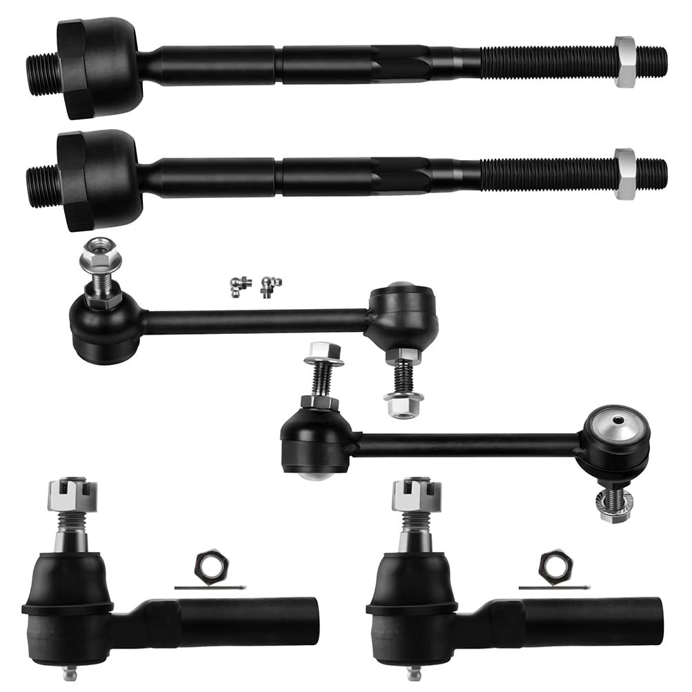 [SUSPENSION KIT FITMENT] 2004-2005 for Chevrolet Colorado,2004-2005 for GMC Canyon. [SUSPENSION SYSTEM FUNCTION] Suspension system transmits the force and force twist acting between the wheel and the frame, buffering the impact force transmitted from the uneven road surface to the frame or the body, and attenuating the vibration caused thereby. [SUSPENSION PARTS FEATURES] Made from forged steel, with plastic insert, filled with grease, Parts are phosphatized to ensure strength and enhance aesthetics. [SUSPENSION KIT CONTAINS] 2 EV80433 Front Inner Tie Rod End, 2 ES80761 Front Outer Tie Rod End, 1 K80582 Front Sway Bar End Link - Driver Side, 1 K80583 Front Sway Bar End Link - Passenger Side.Other fine products